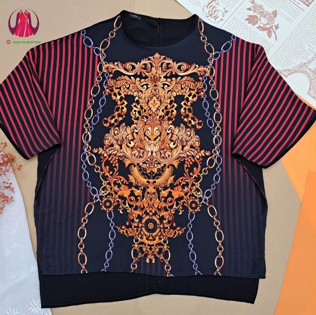 سایز۱: دورکمر: ۱۲۰ قدپشت:۷۷ قدجلو:۶۷ بلندی آستین از یقه: ۵۰