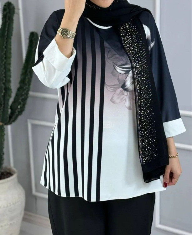 سایز۱: دورسینه: ۱۱۲ قدآستین: ۵۲ قدشومیز:۷۰ مناسب سایز ۴۲ تا۴۶