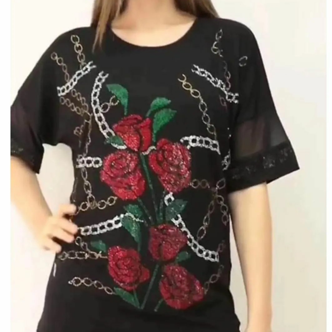 بلوز مجلسی زنانه کار شده با سنگ کریستال رز و زنجیر کد ۰۲۱۲۲۱۲