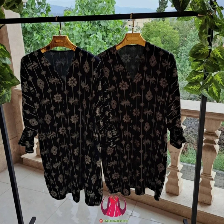 مانتو زنانه نخی طرح خامه‌ دوزی کد ۰۳۰۱۰۸۲
