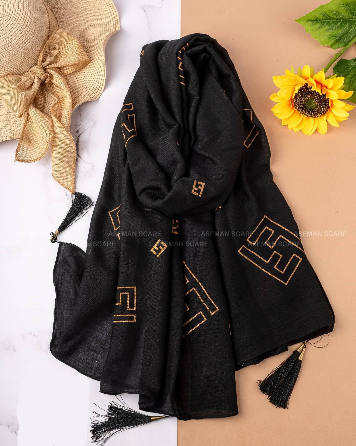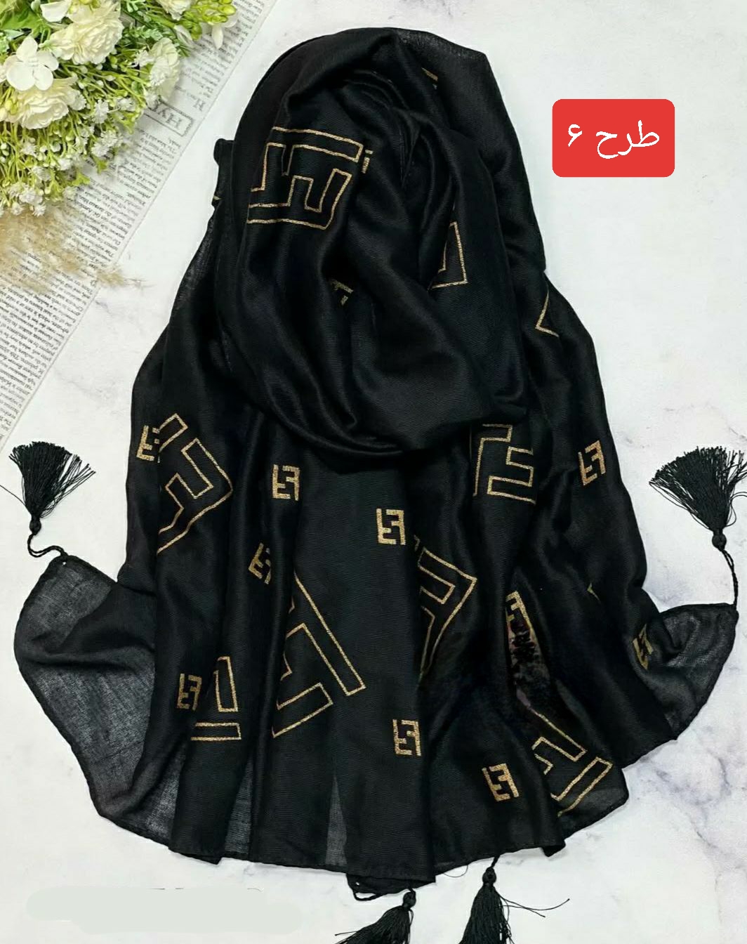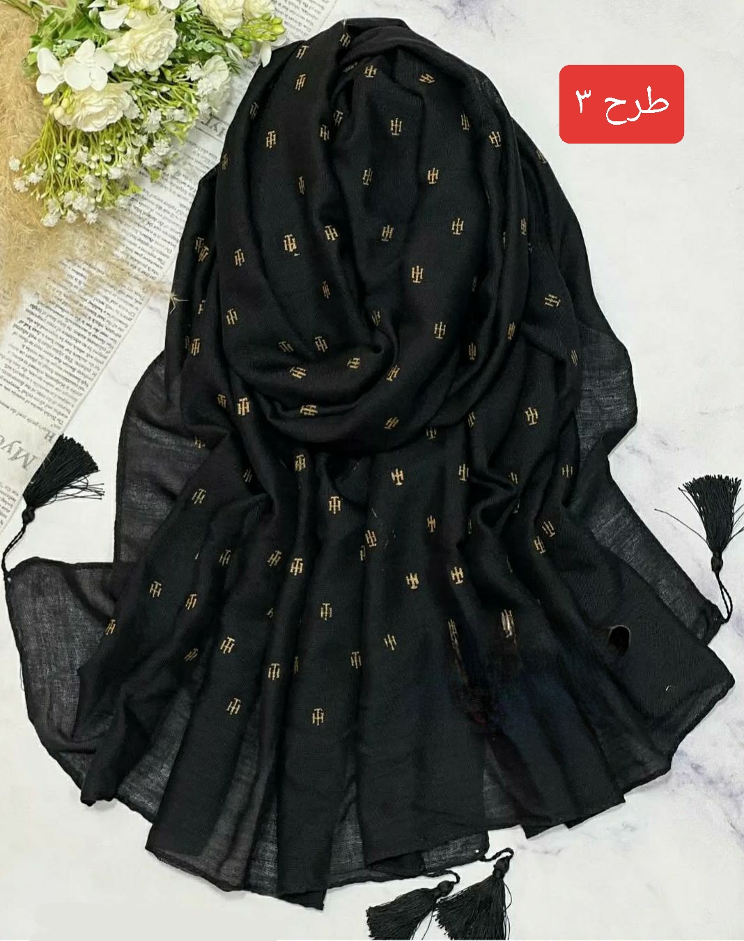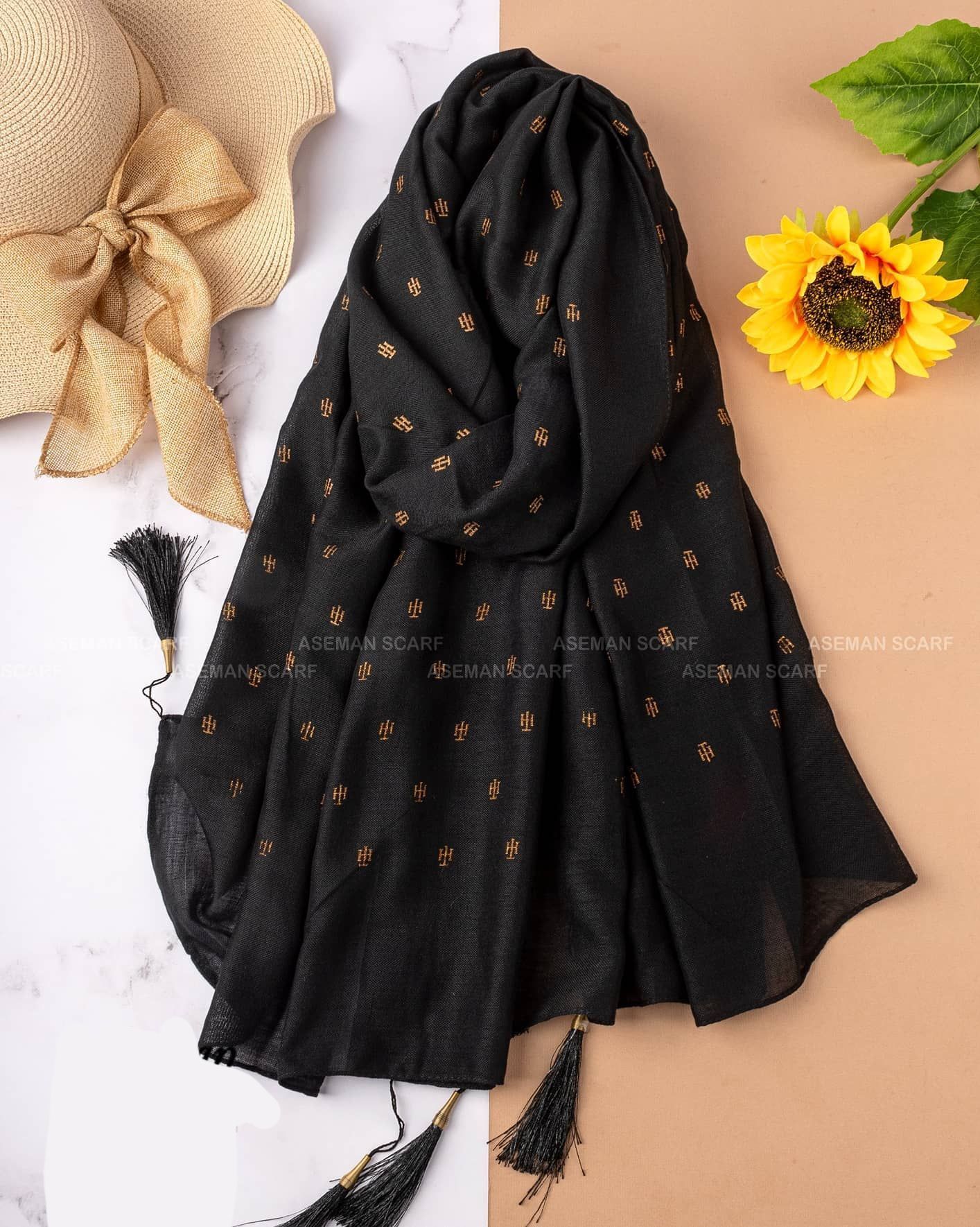 شال نخی طلاکوب منگوله‌دار کد ۰۳۰۱۱۶۲