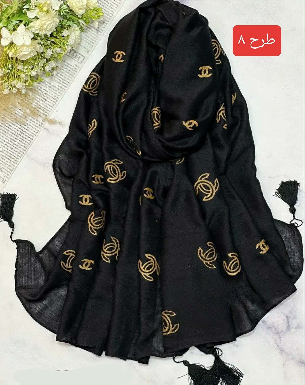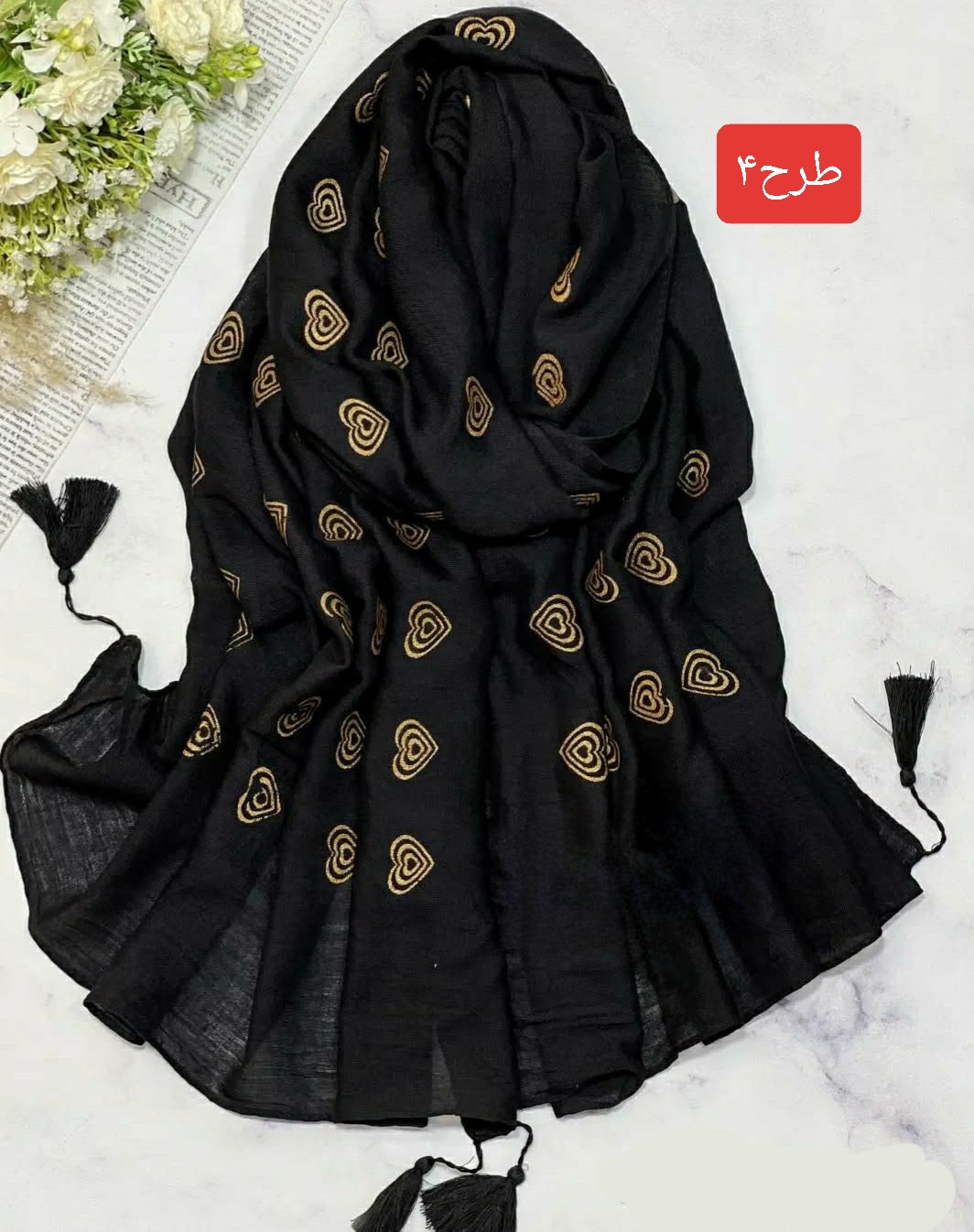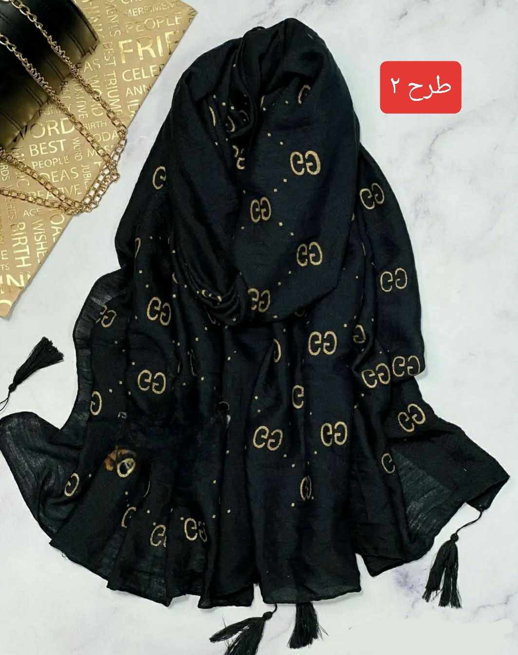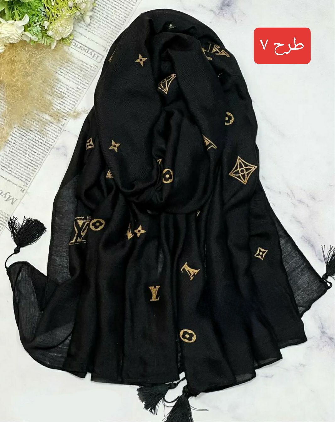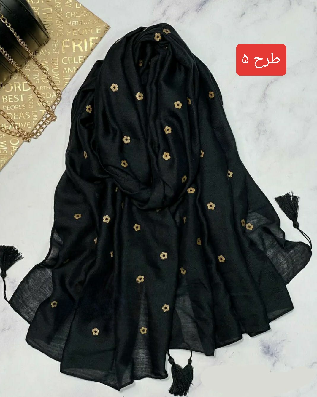 شال نخی طلاکوب منگوله‌دار کد ۰۳۰۱۱۶۲