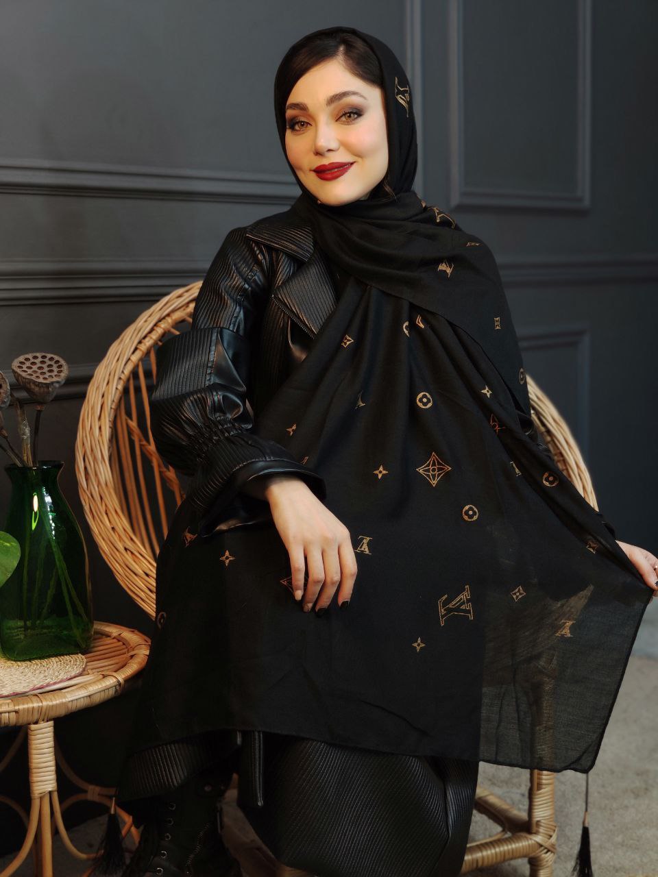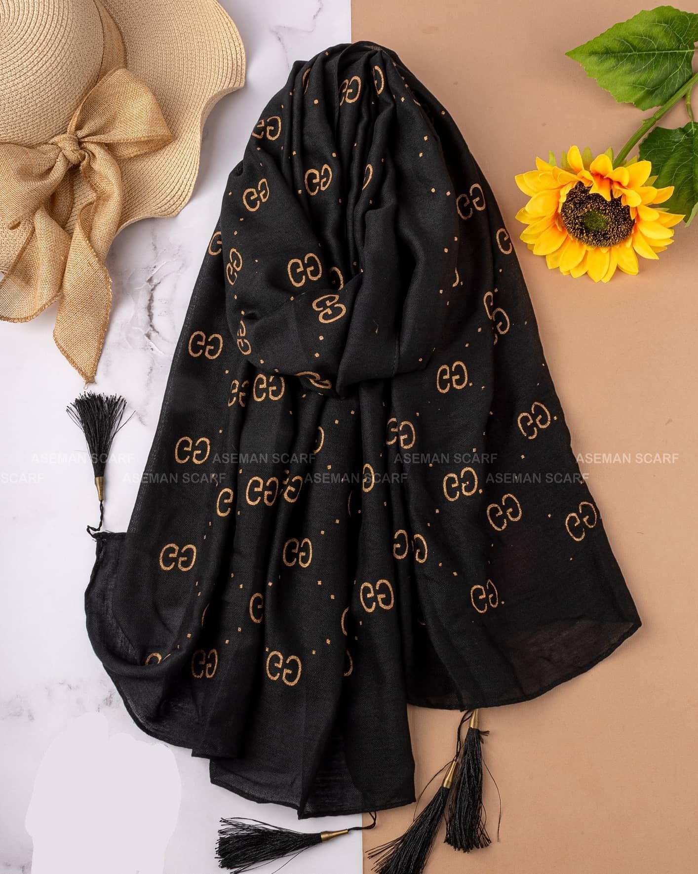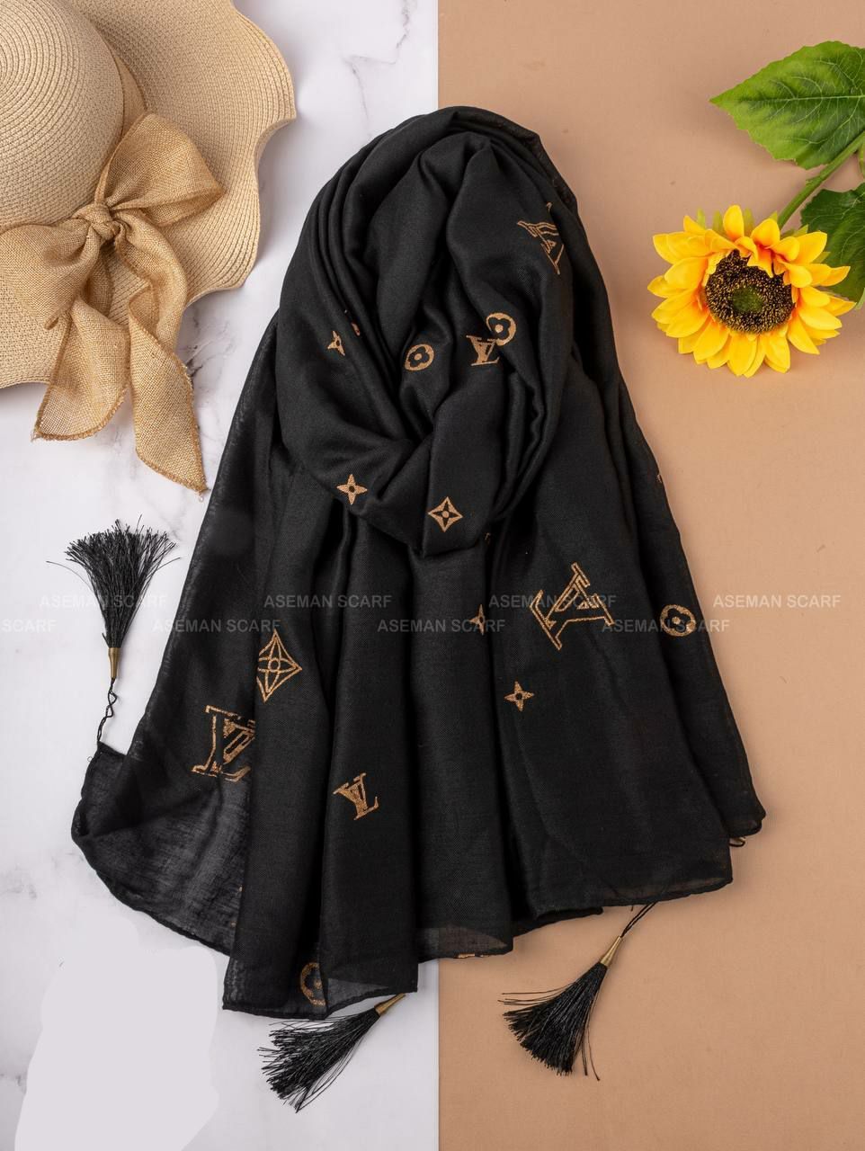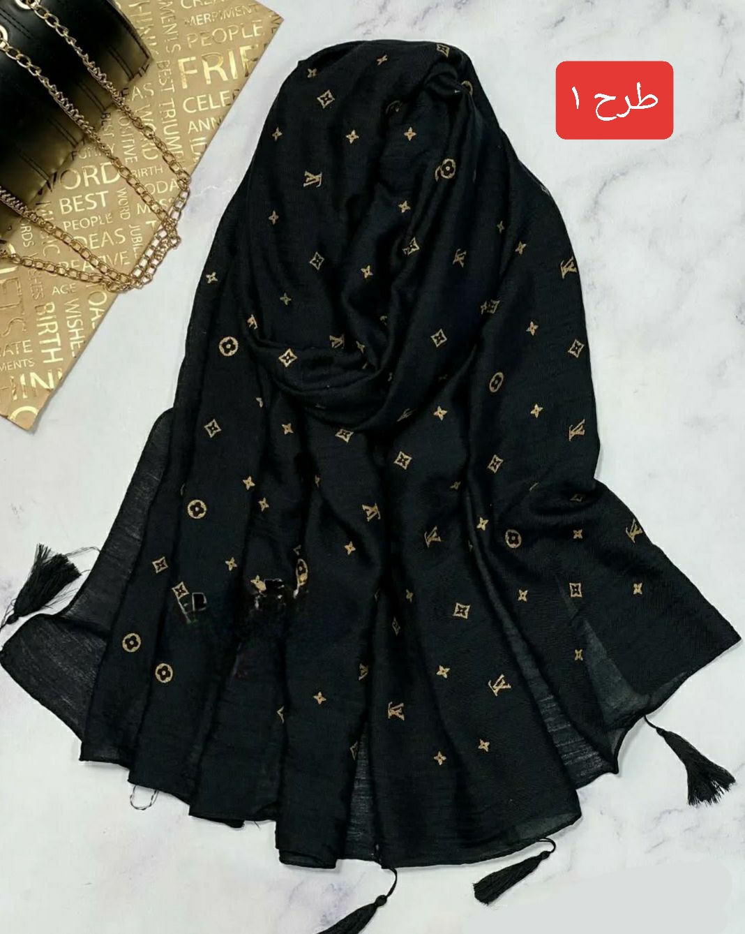شال نخی طلاکوب منگوله‌دار کد ۰۳۰۱۱۶۲