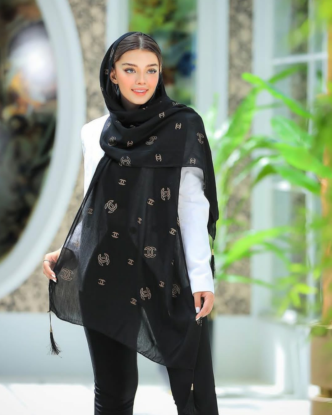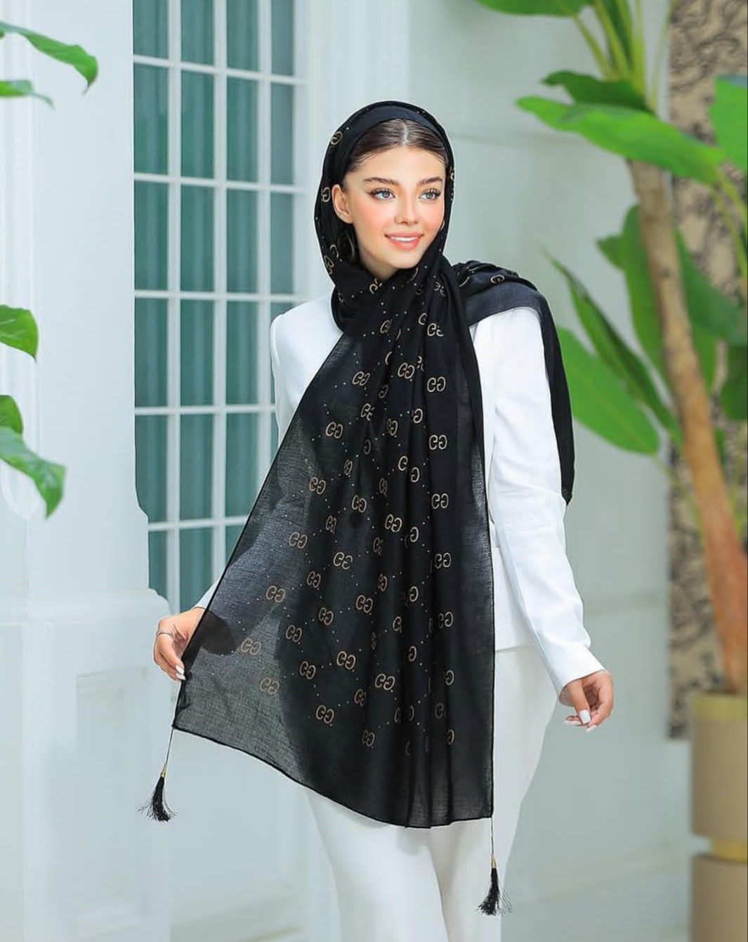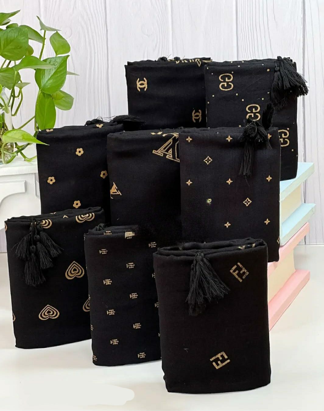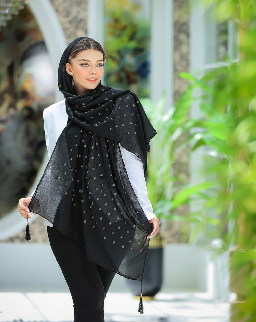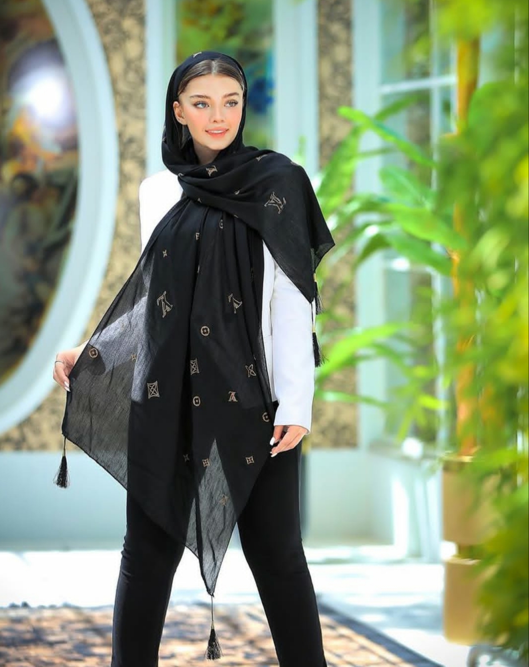 شال نخی طلاکوب منگوله‌دار کد ۰۳۰۱۱۶۲