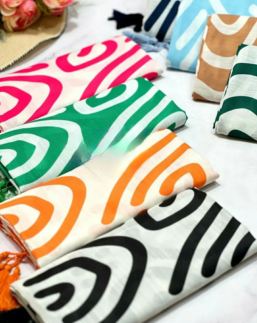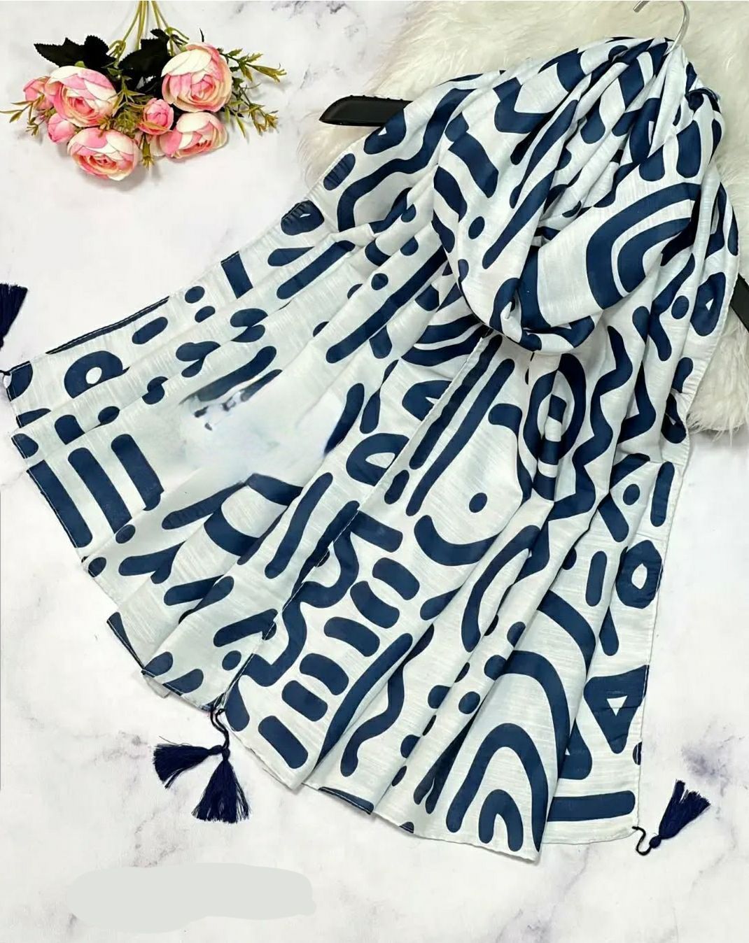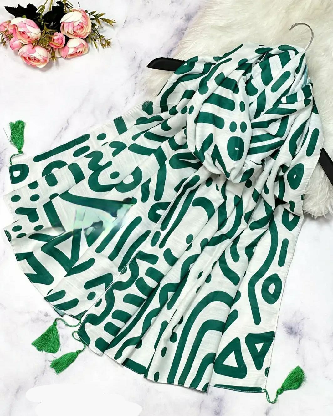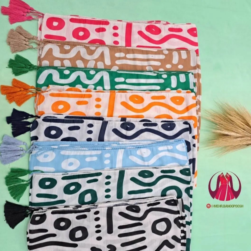 شال نخی طرح لینن منگوله‌ دار کد ۰۳۰۱۱۸۷