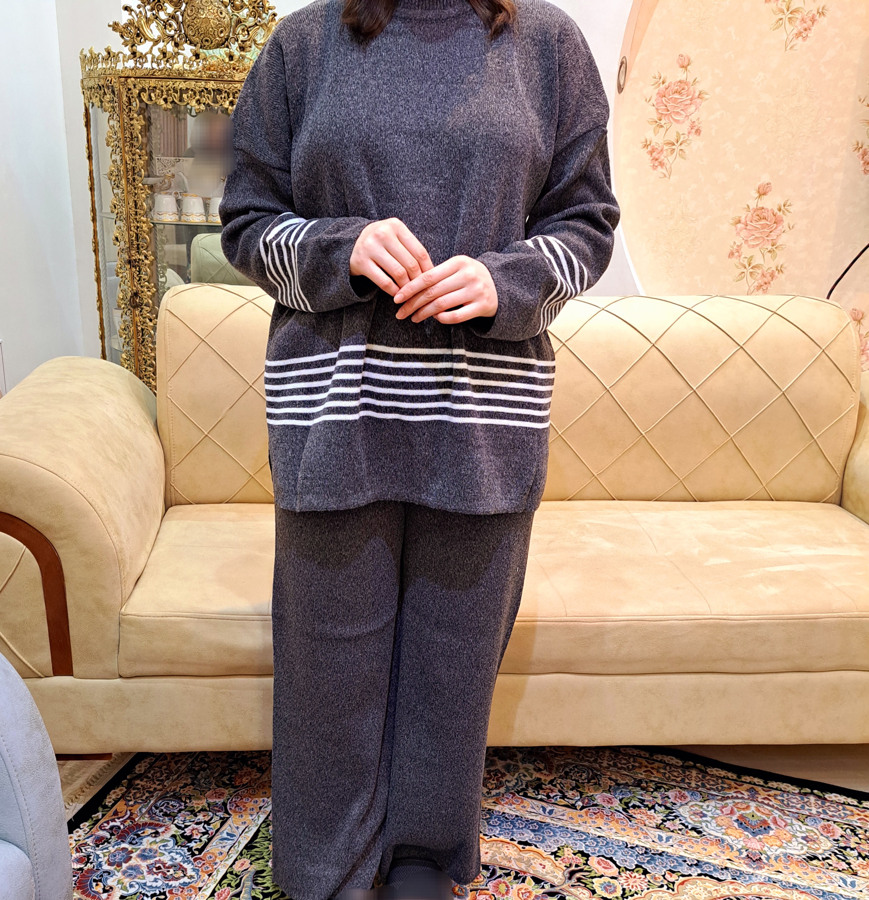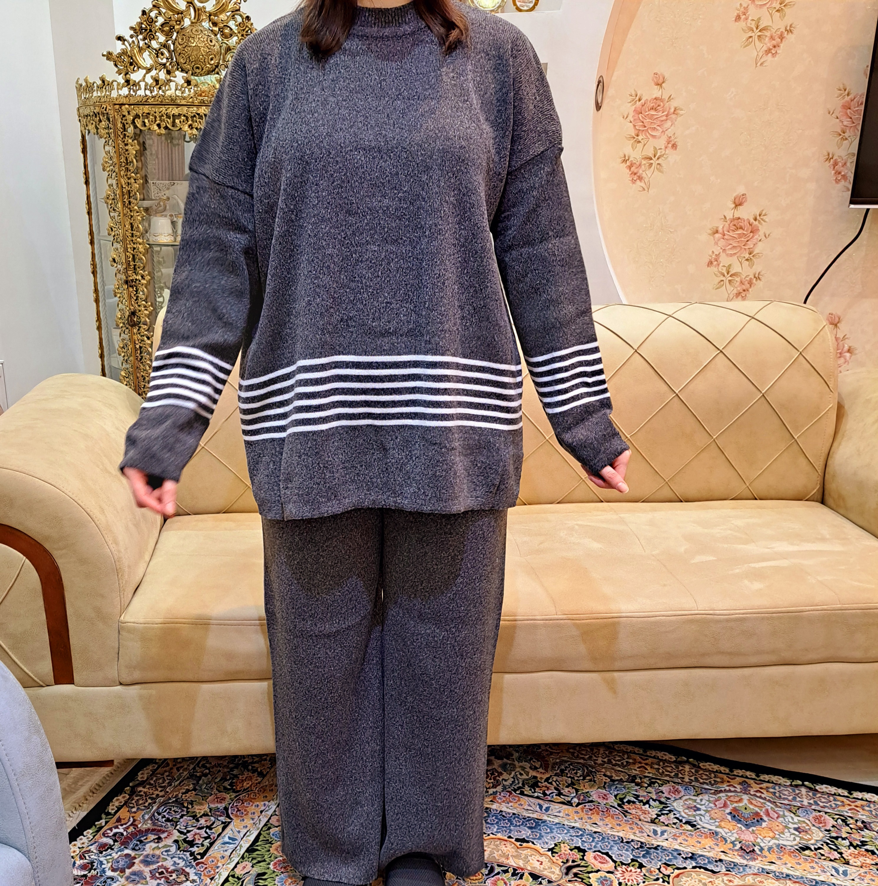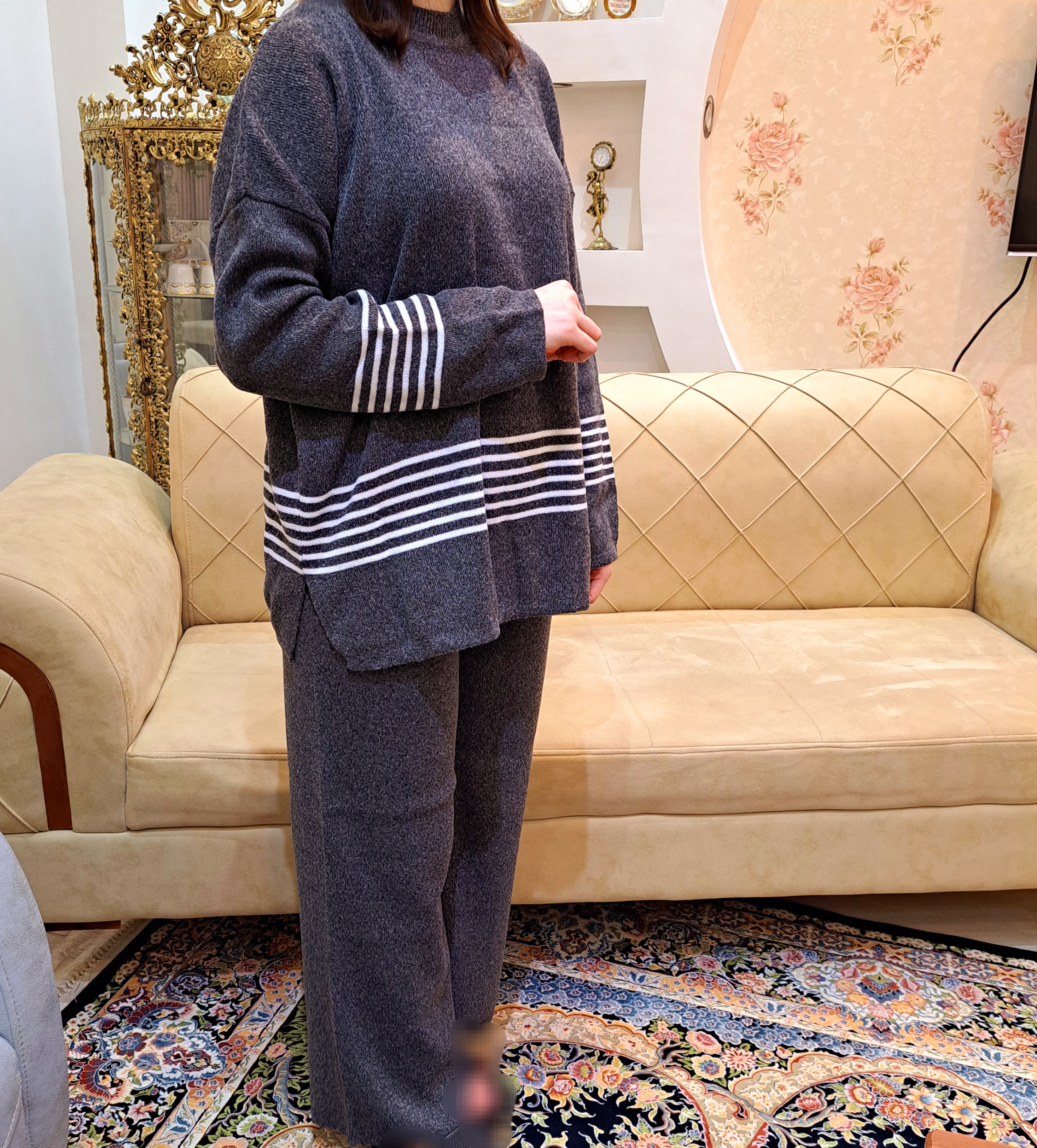 شلوار: دورکمر: ۱۳۰ قدفاق: ۴۲ دورران: ۸۰ قدشلوار: ۱۰۵ گشادی دمپا: ۷۰