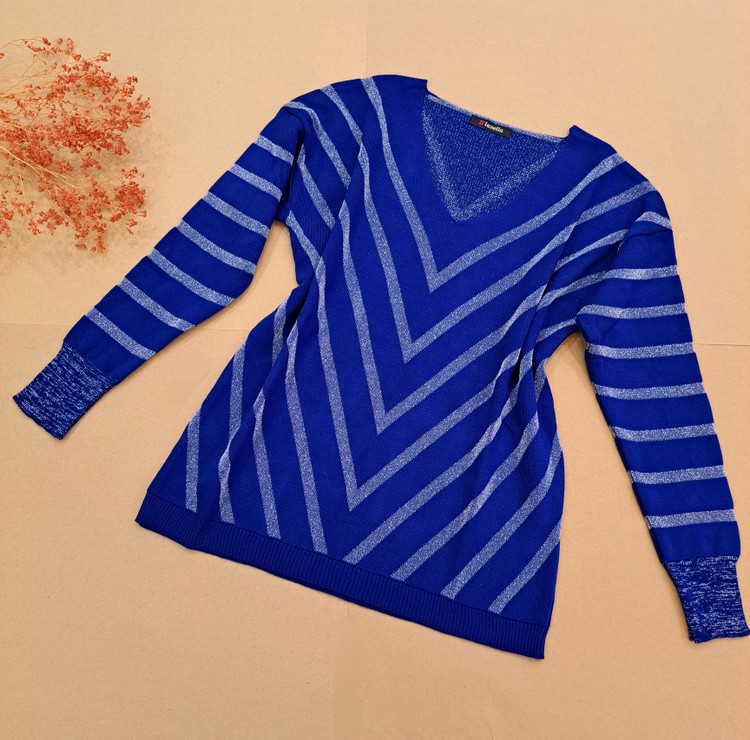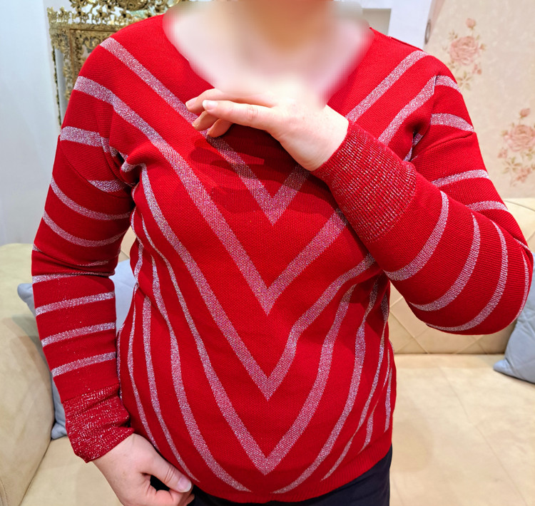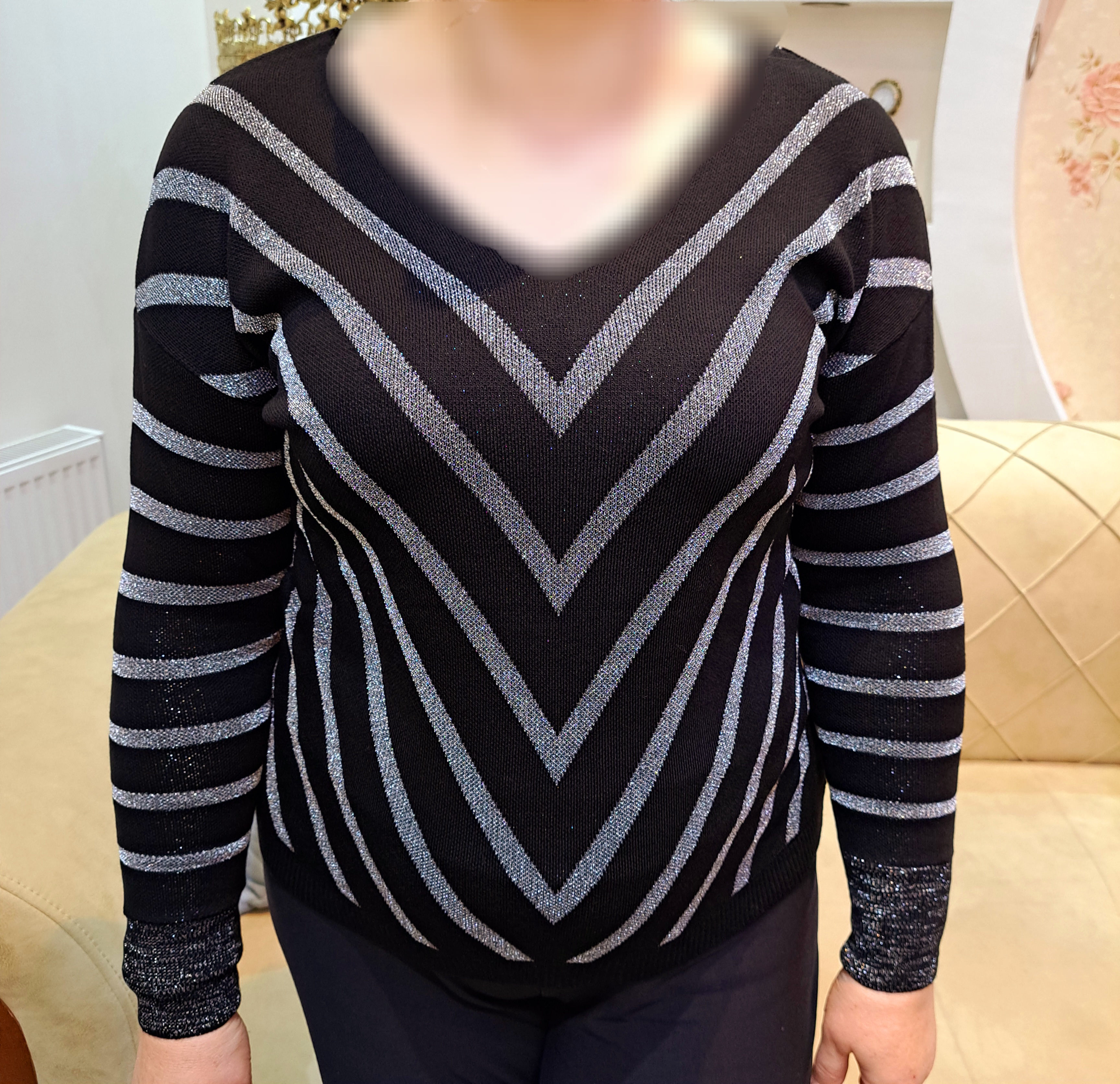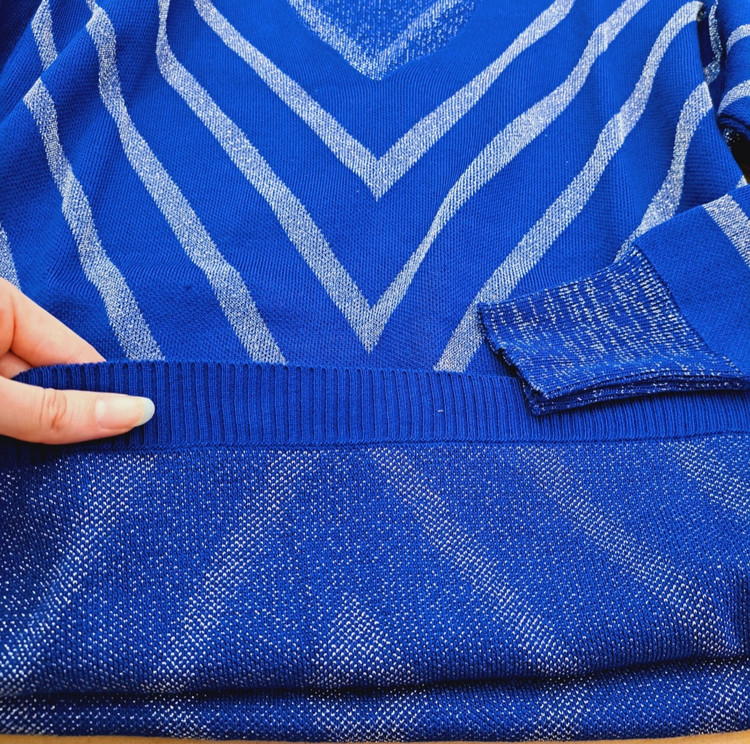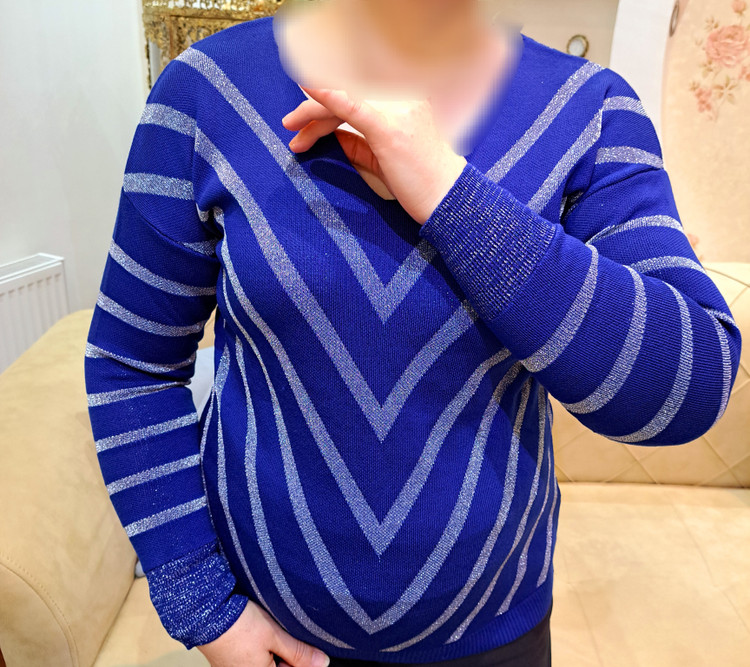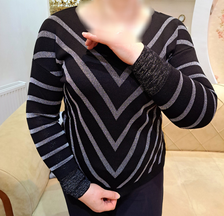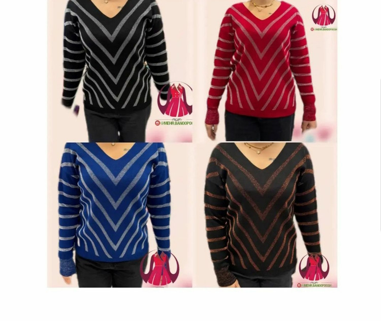 ***یقه هفت/مچ آستین کشبافت/پایین بلوز کشبافت/تمام لمه بافت/تمامی اندازهها تا ۸ سانتی متر کشسانی دارند.
