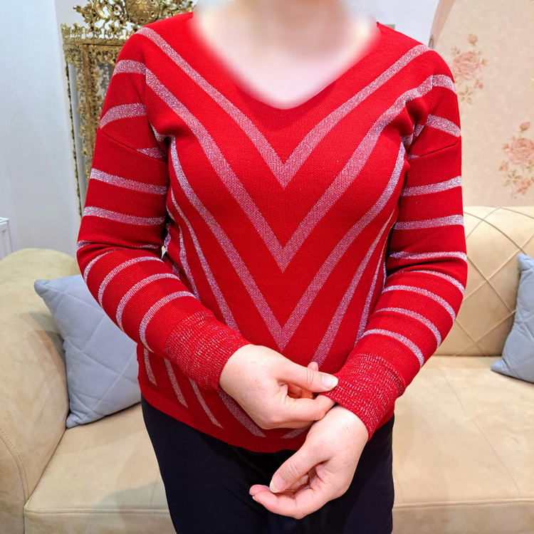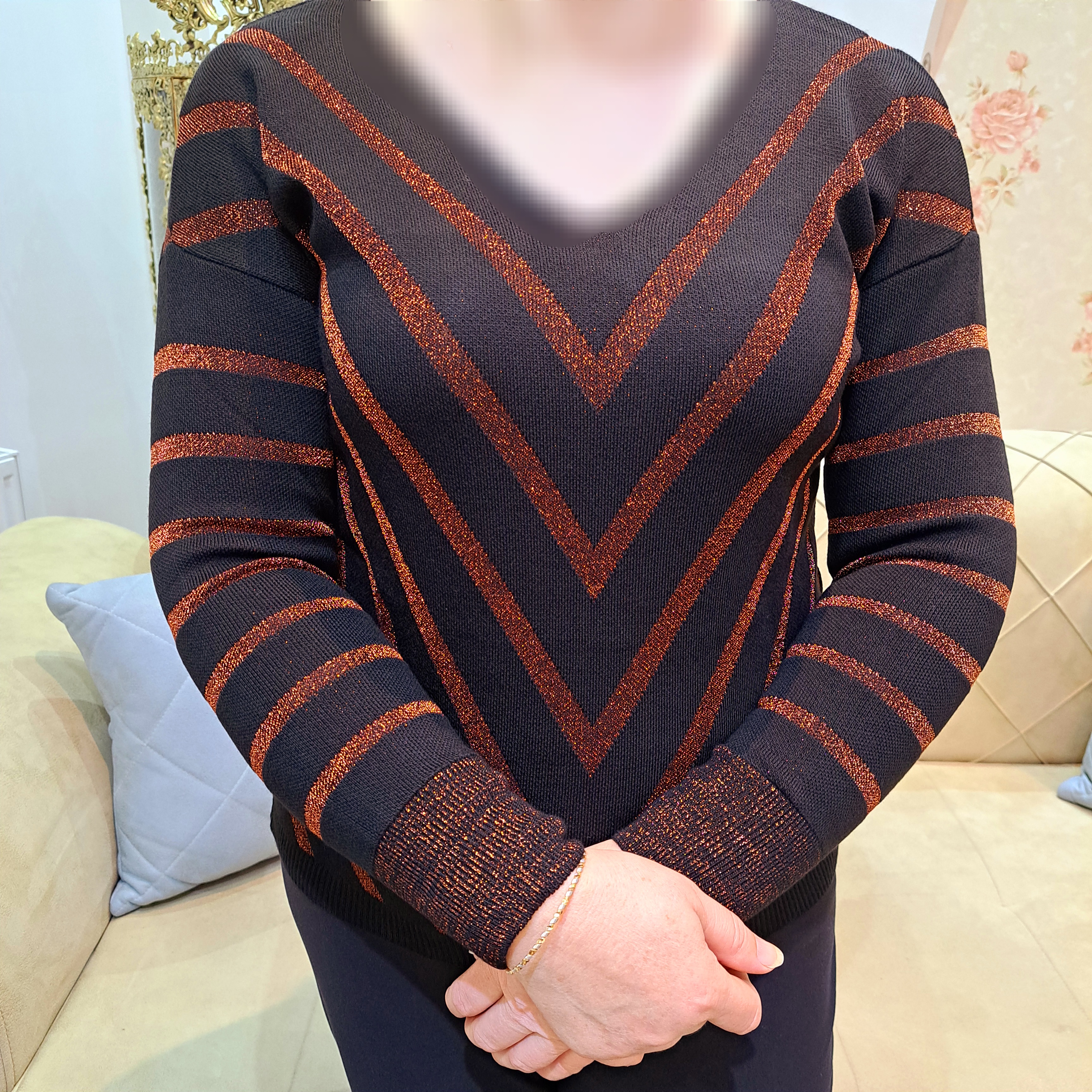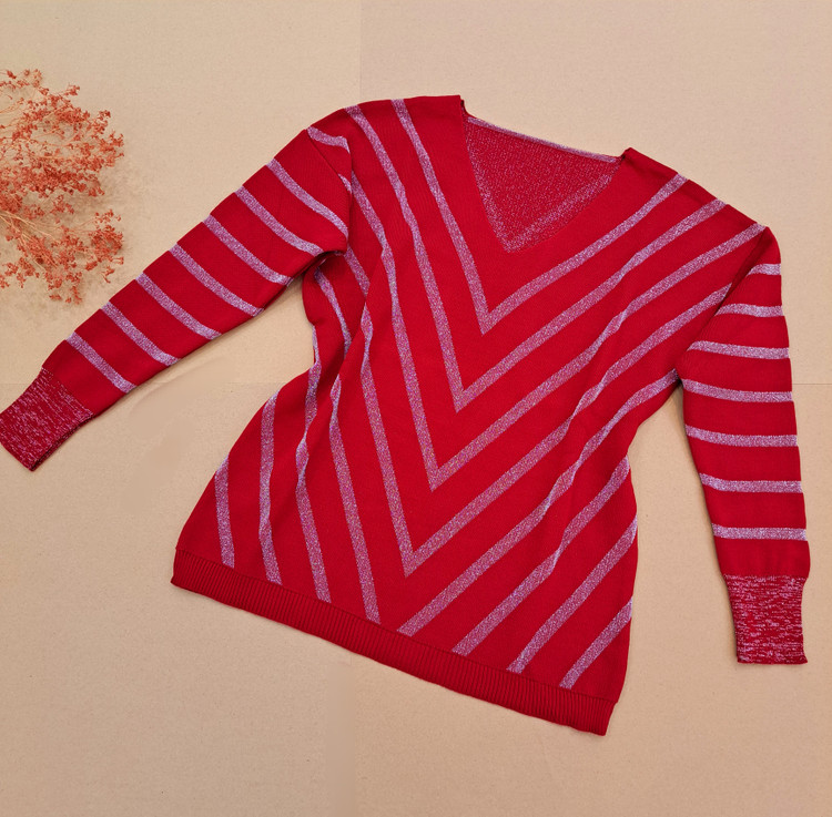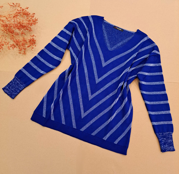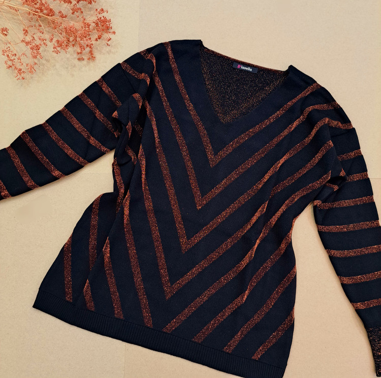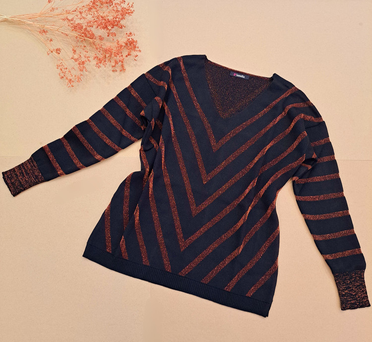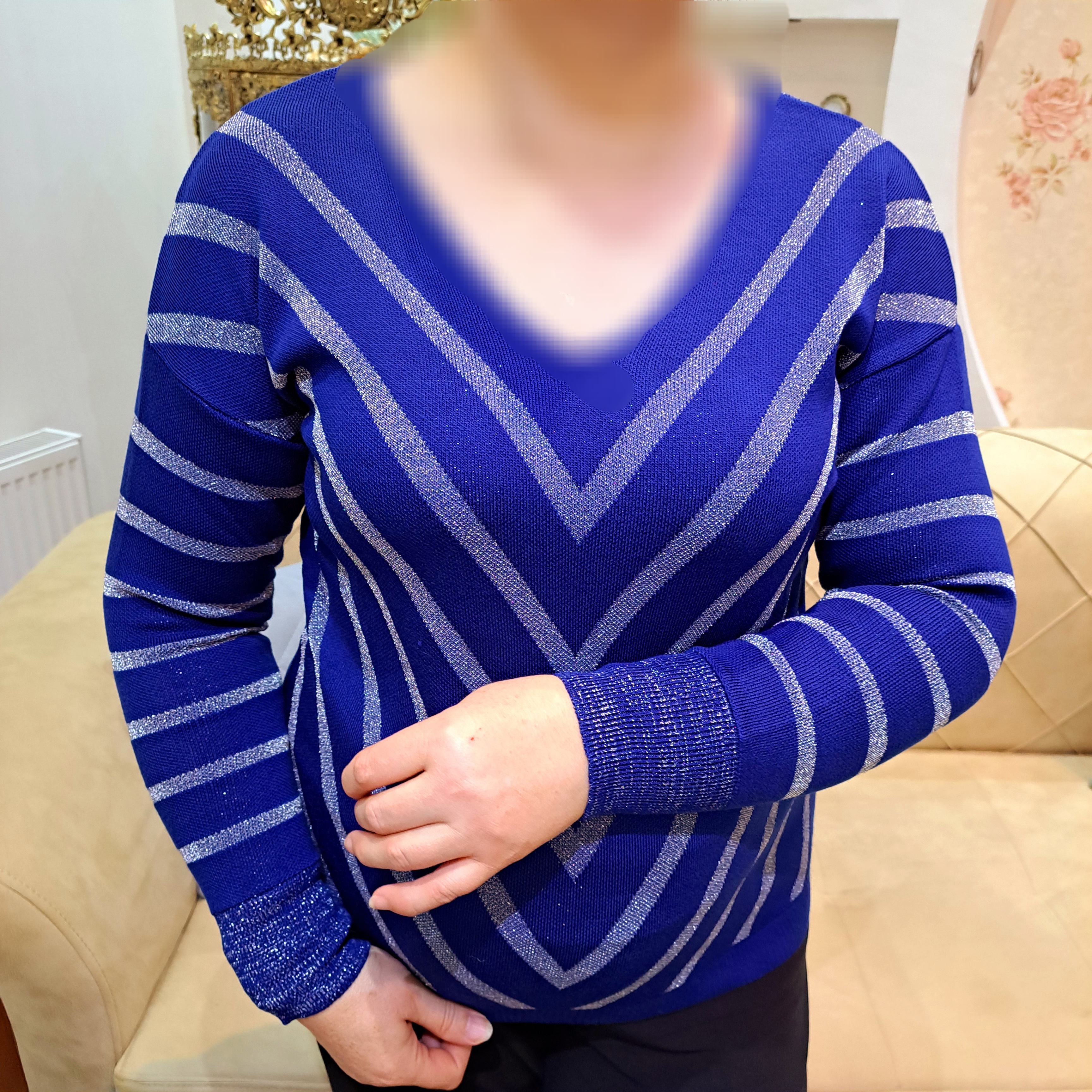 ***یقه هفت/مچ آستین کشبافت/پایین بلوز کشبافت/تمام لمه بافت/تمامی اندازهها تا ۸ سانتی متر کشسانی دارند.