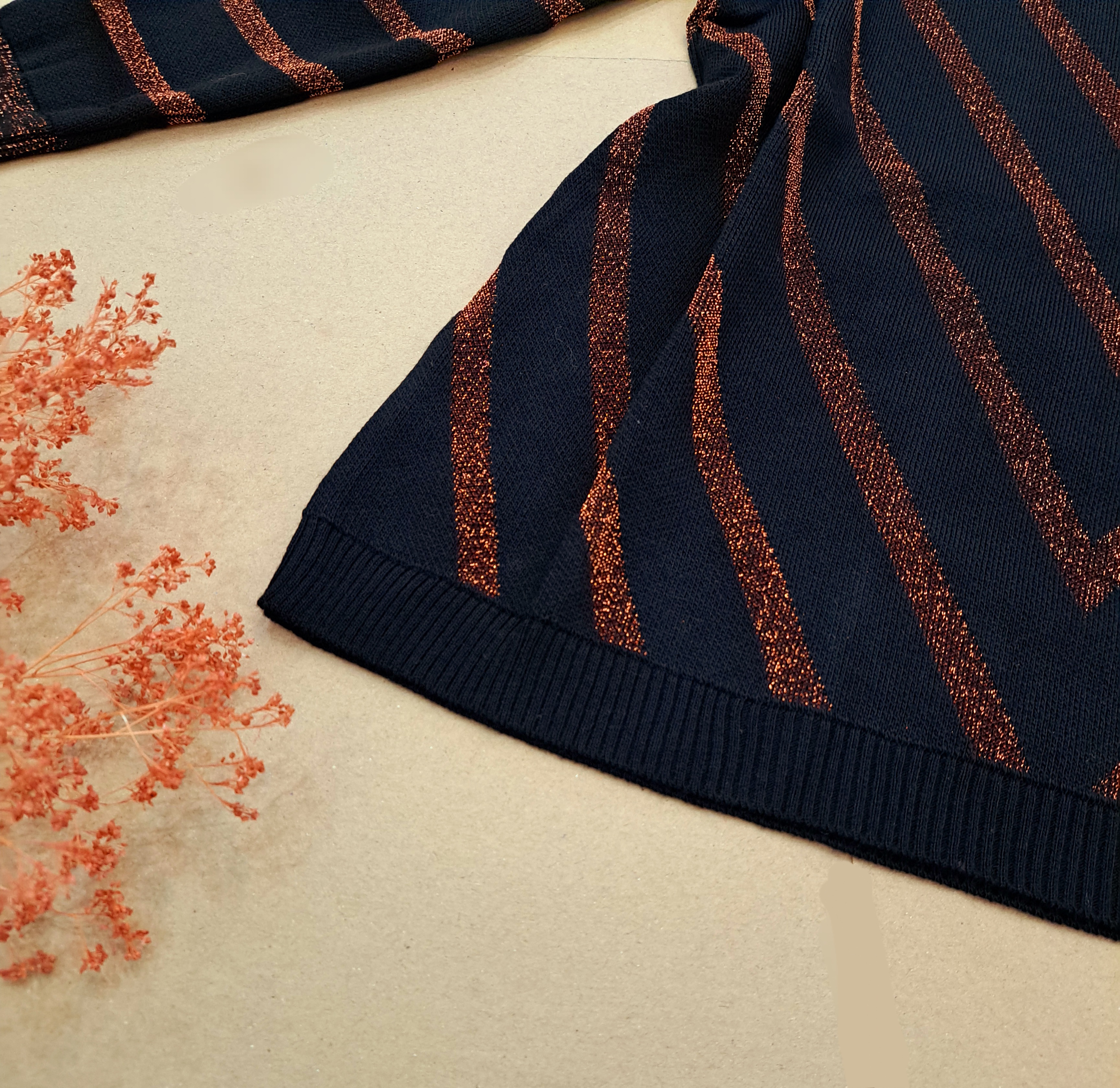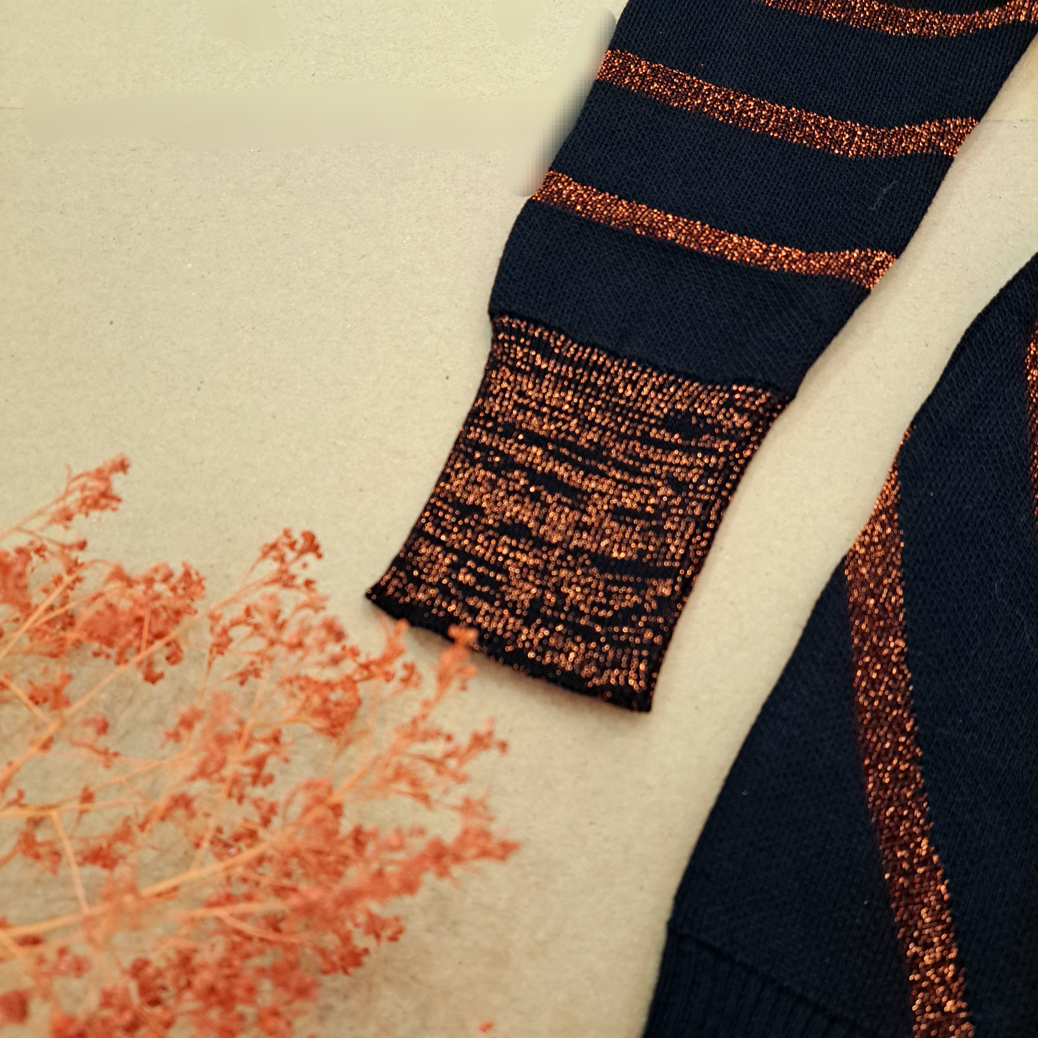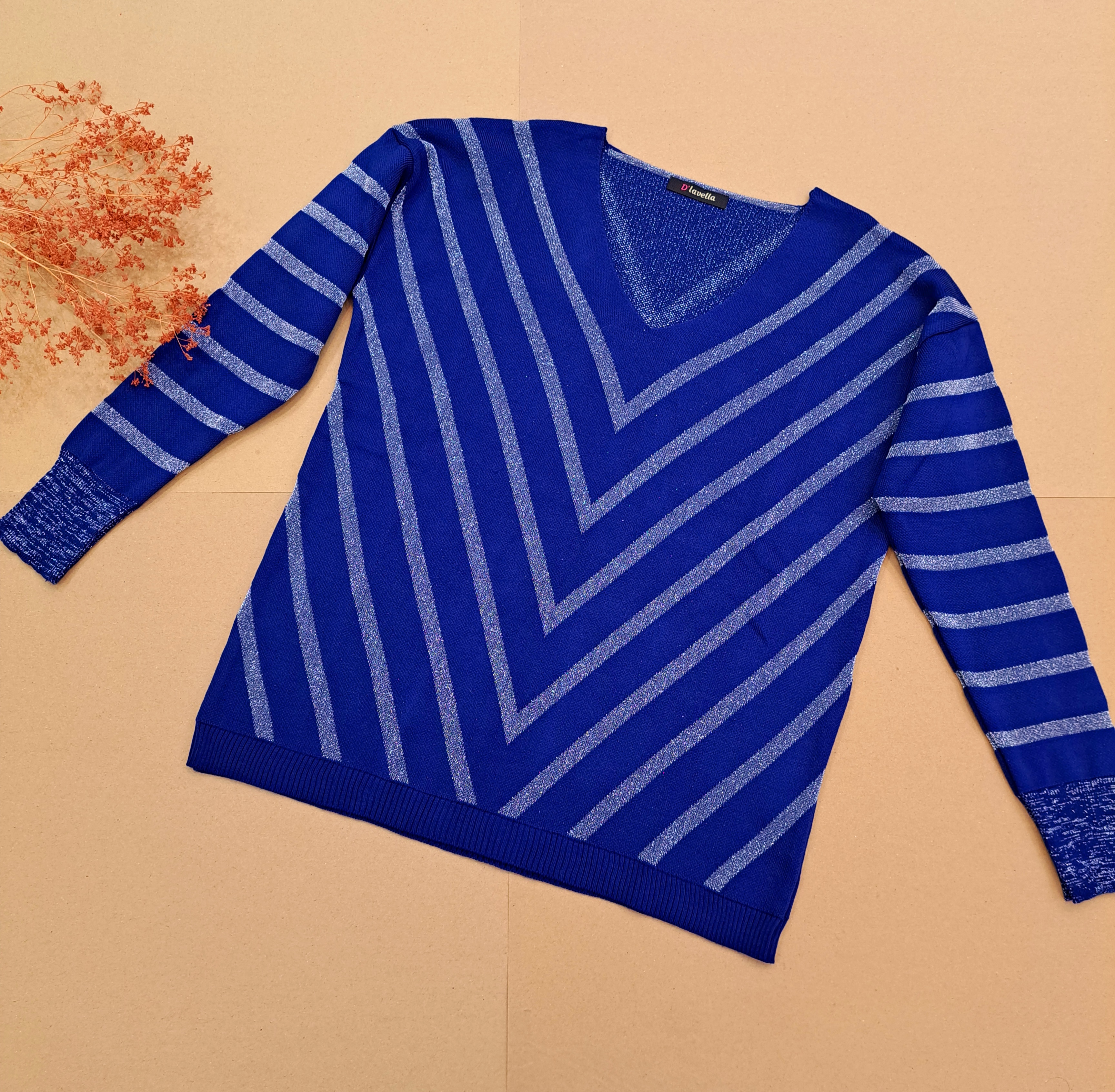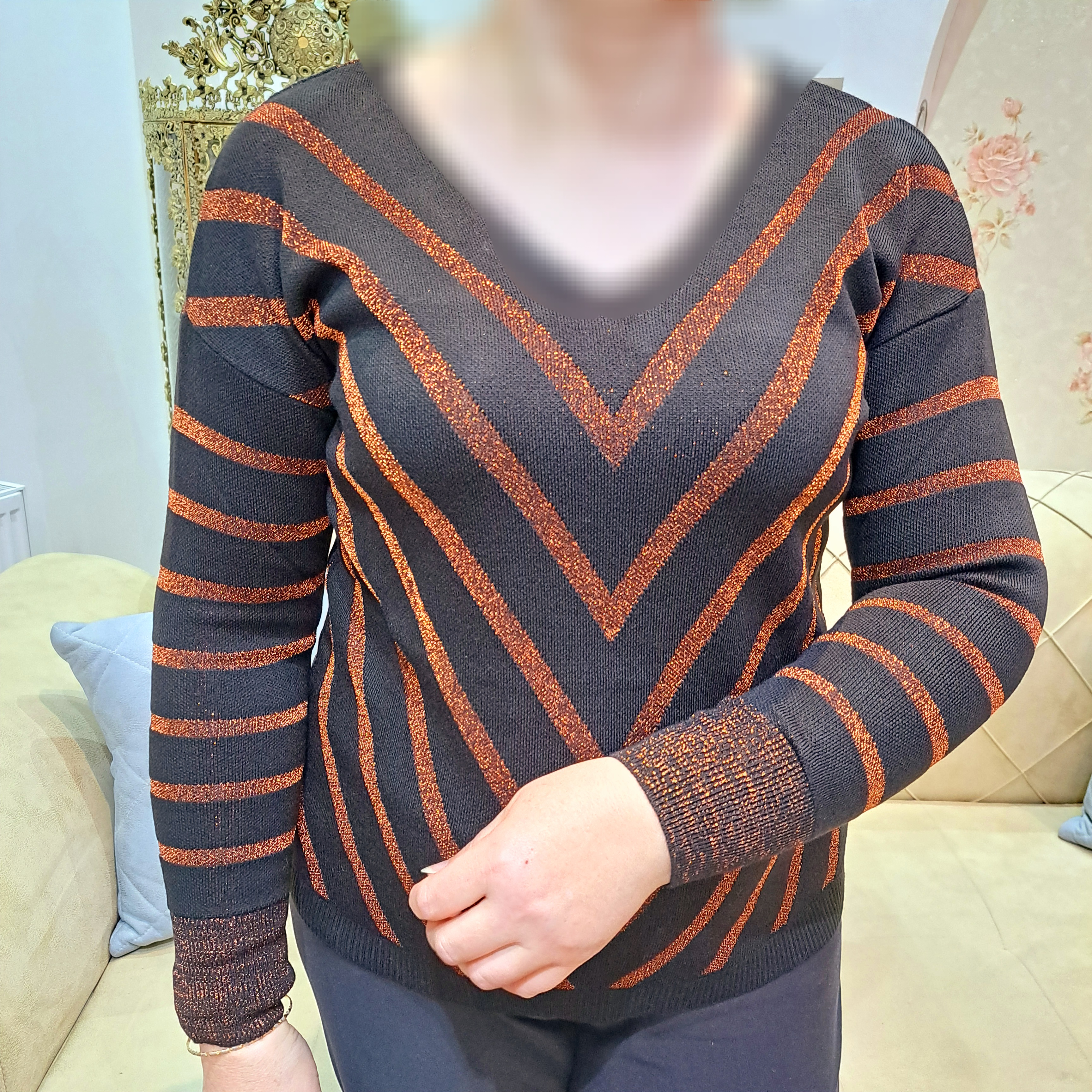 ***یقه هفت/مچ آستین کشبافت/پایین بلوز کشبافت/تمام لمه بافت/تمامی اندازهها تا ۸ سانتی متر کشسانی دارند.