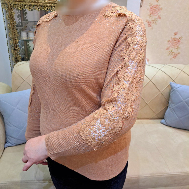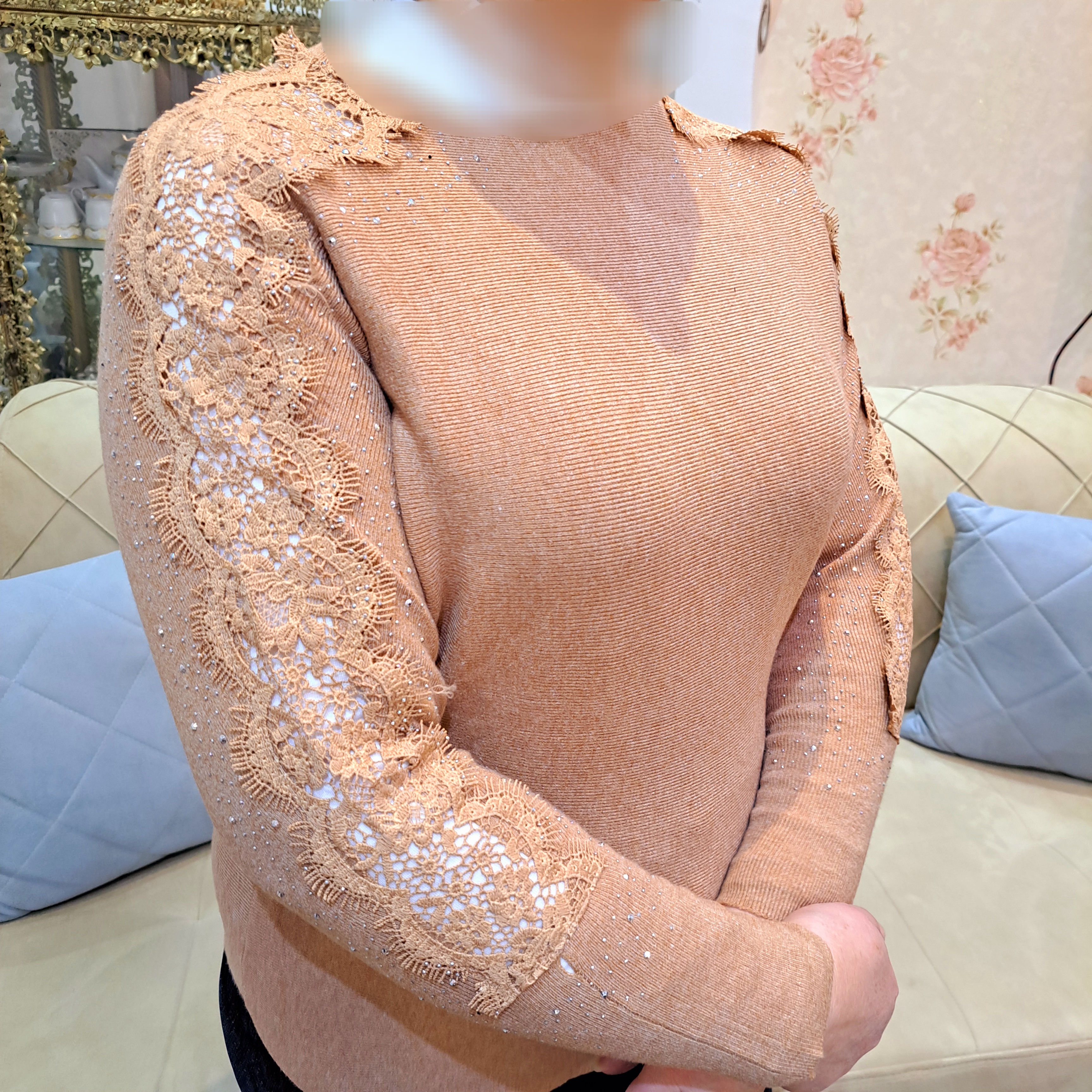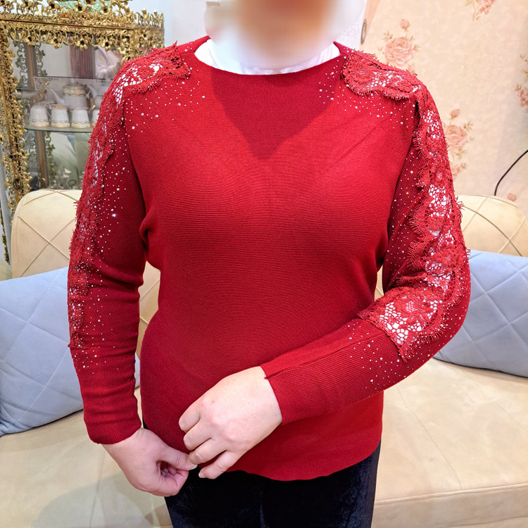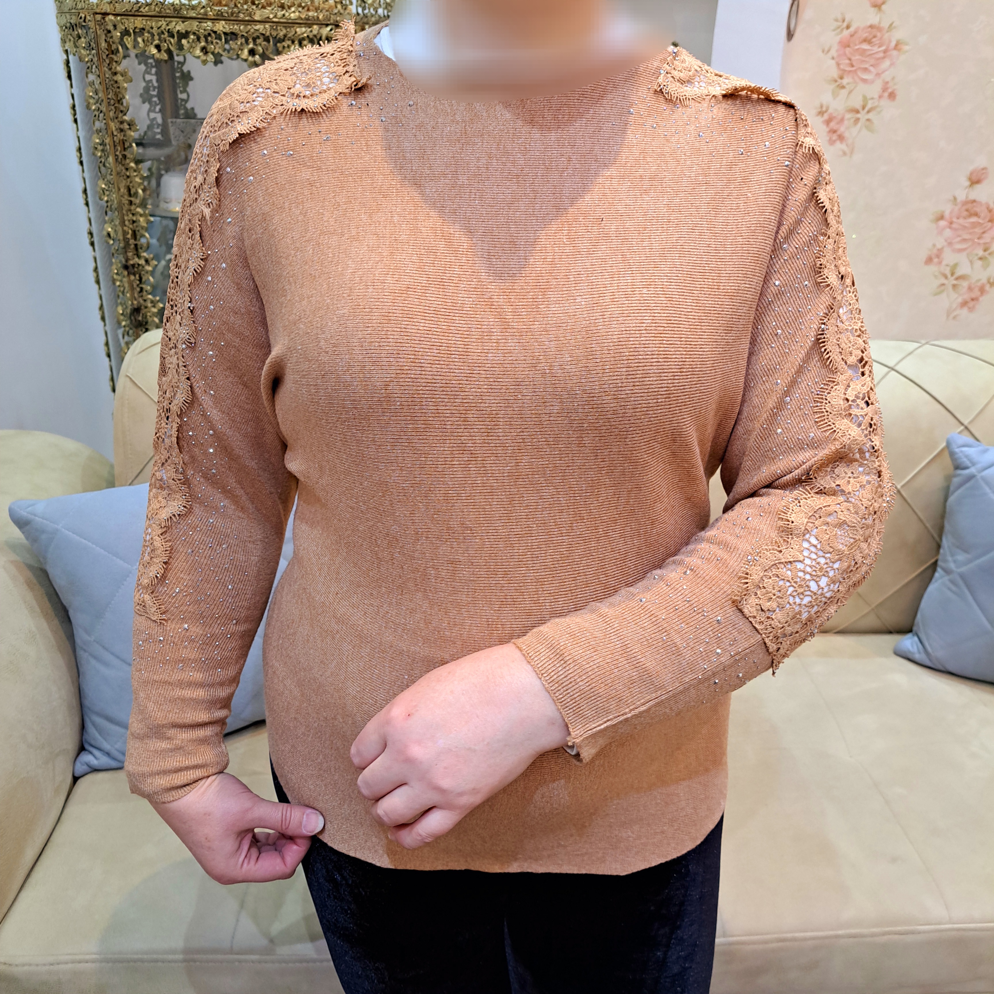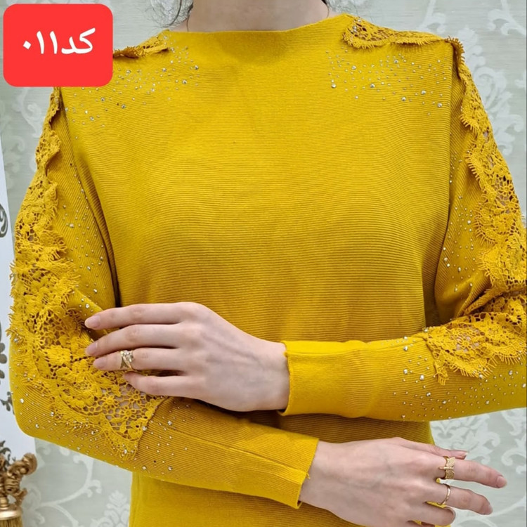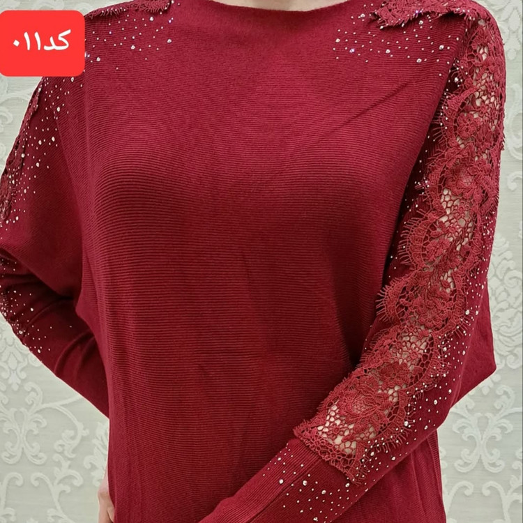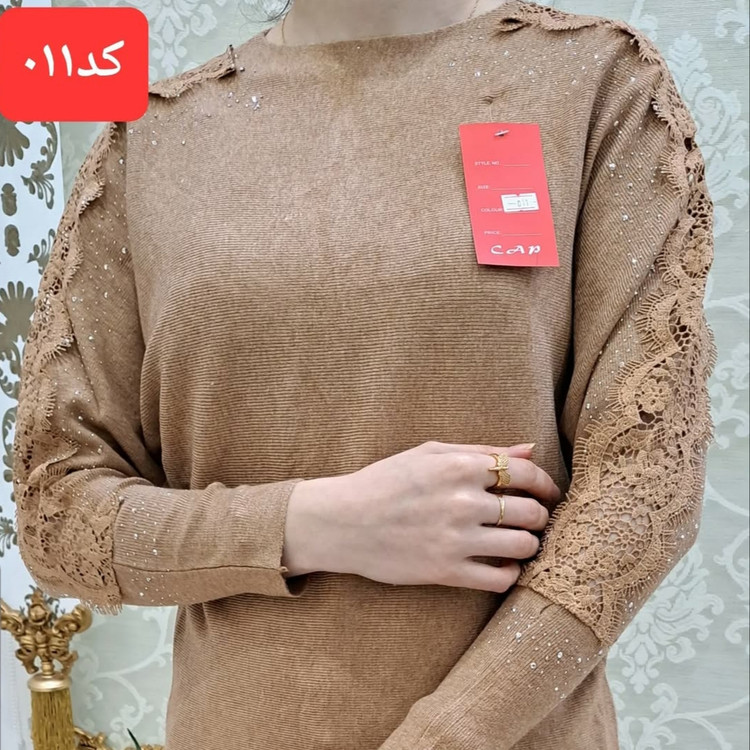 ***آستینهاخرجکار توری دارند/آستین کیمونو/پایین بلوز هلالی است.