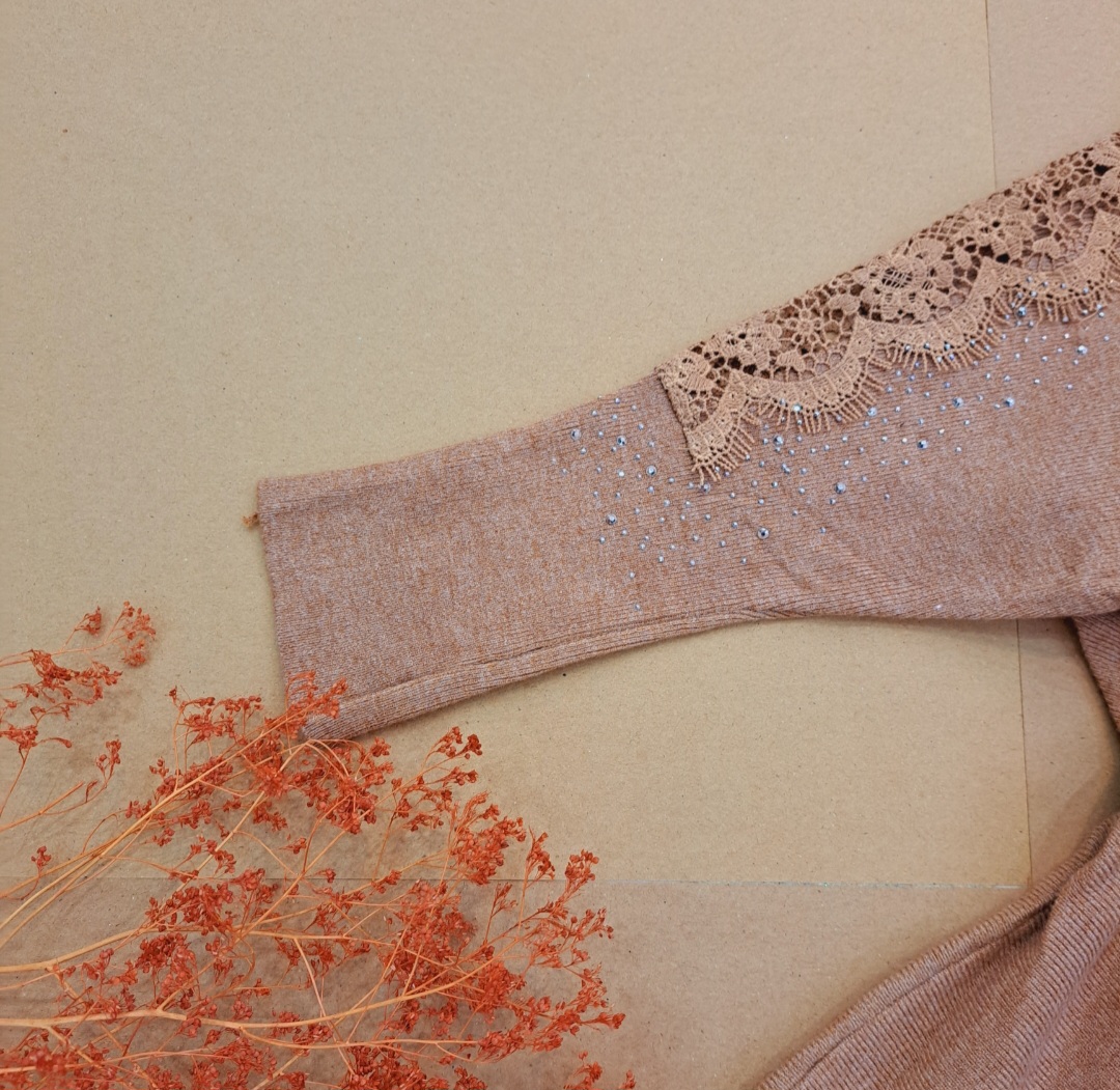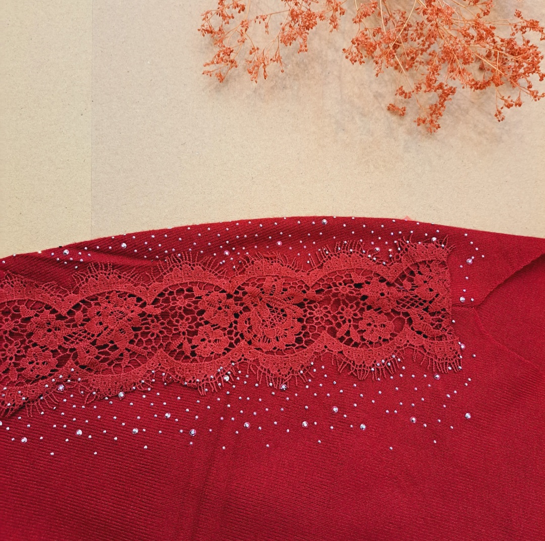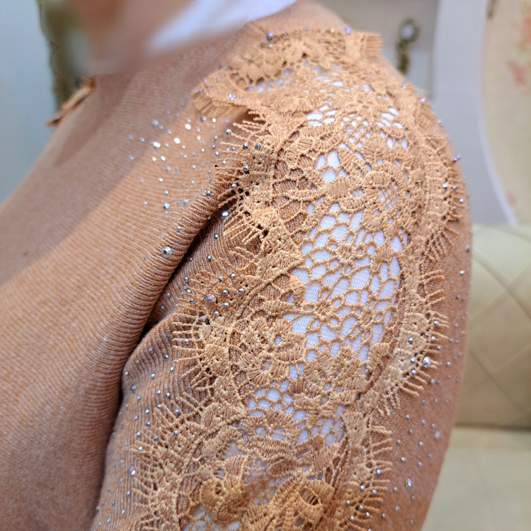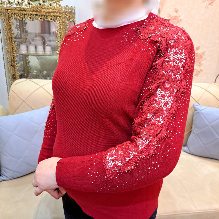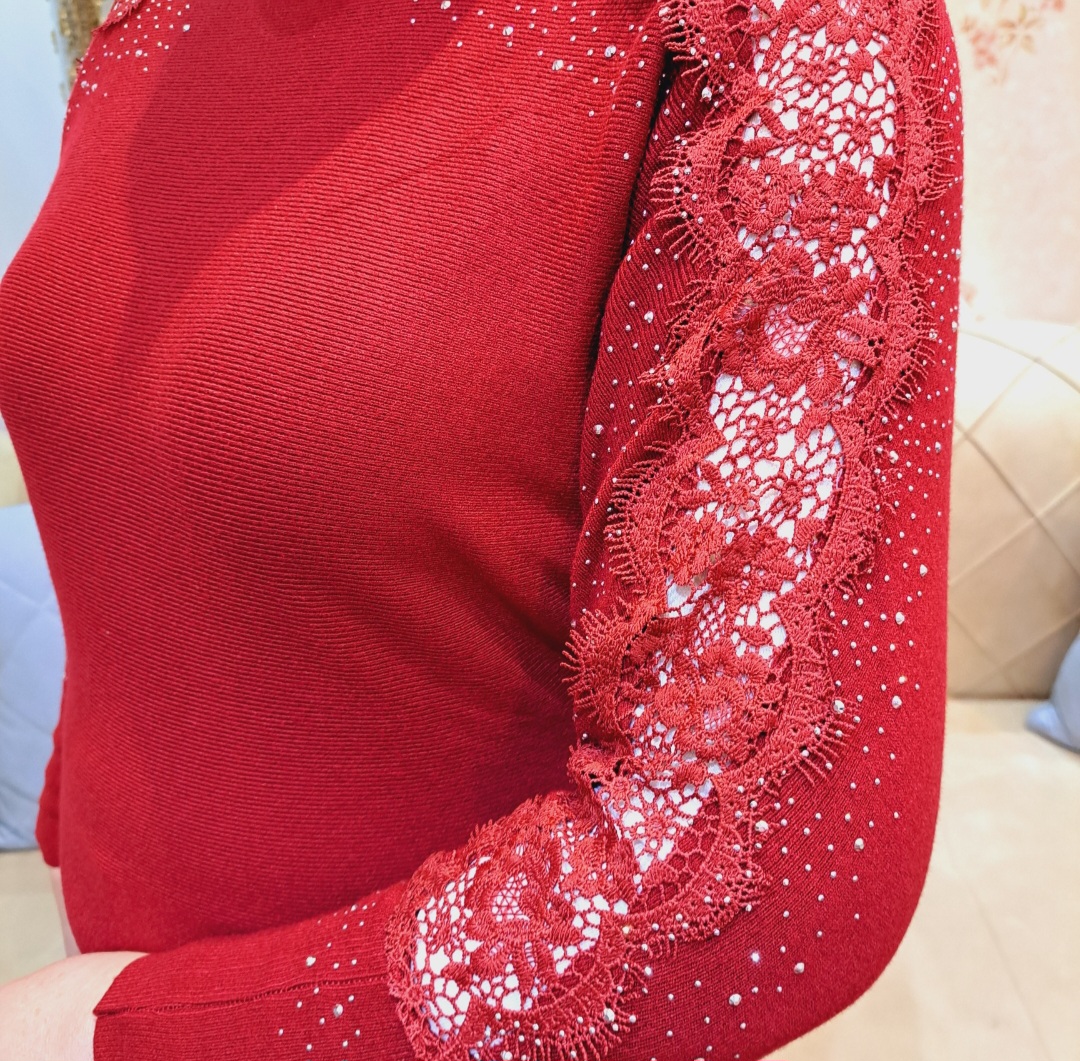 ***آستینهاخرجکار توری دارند/آستین کیمونو/پایین بلوز هلالی است.