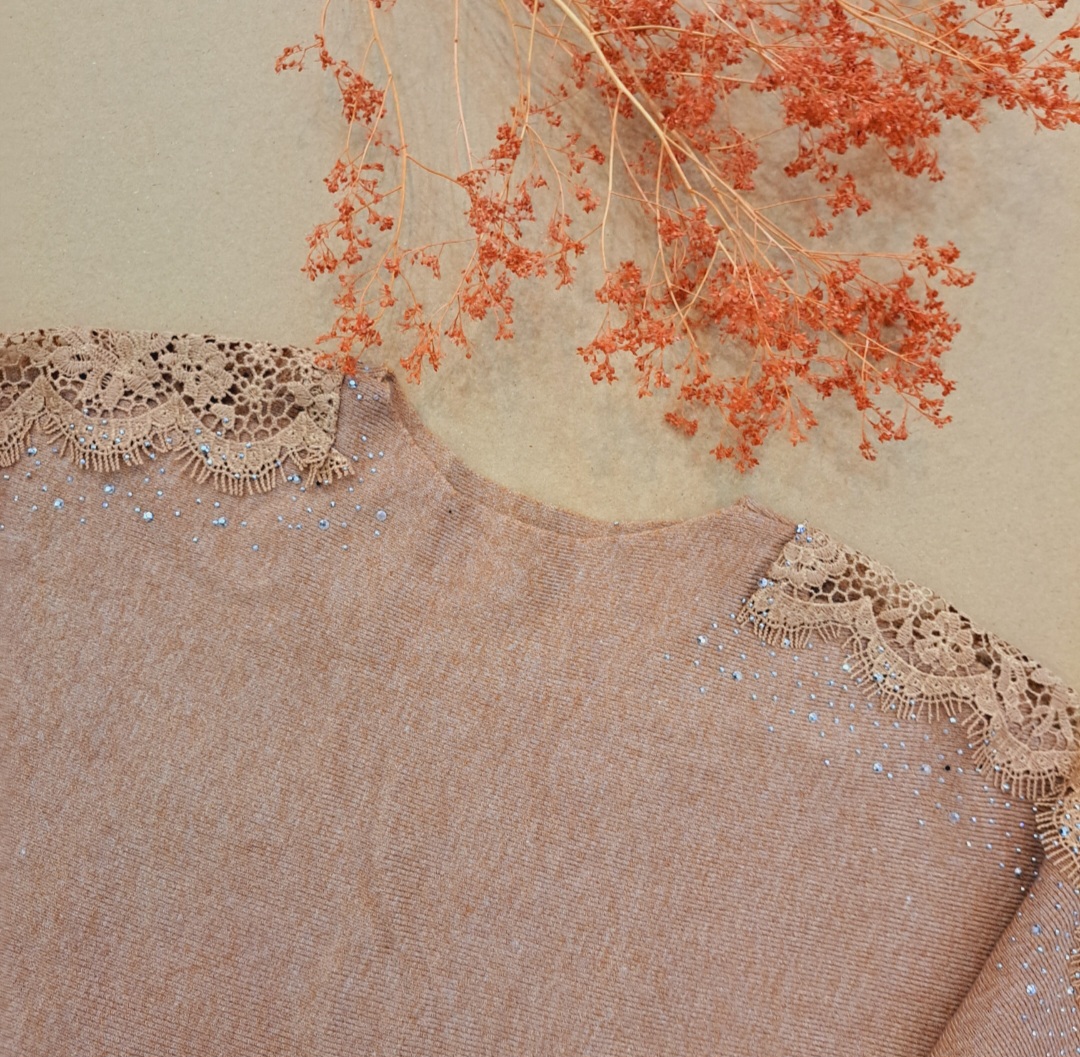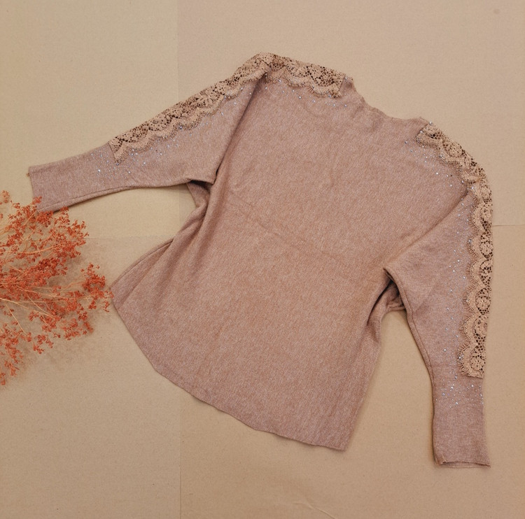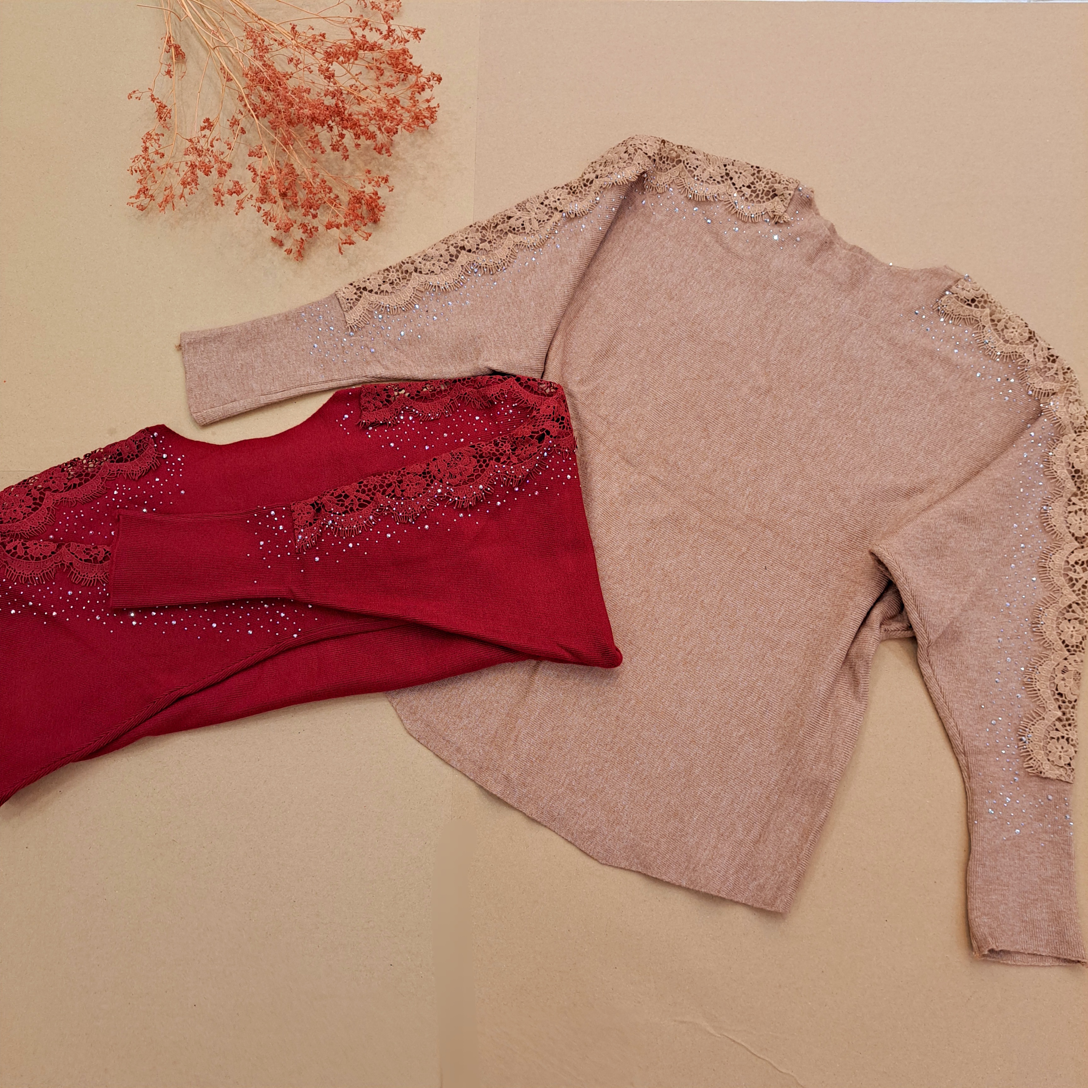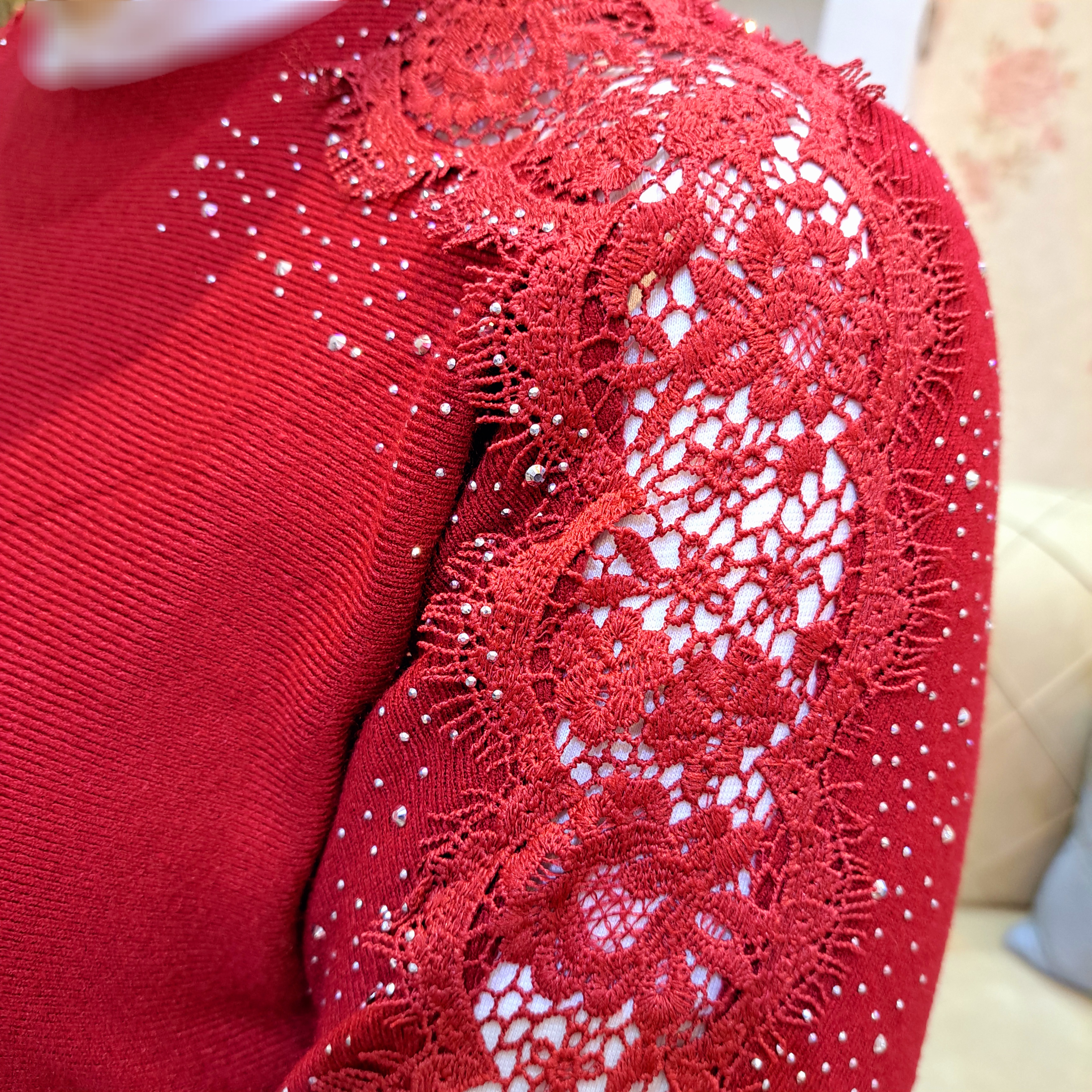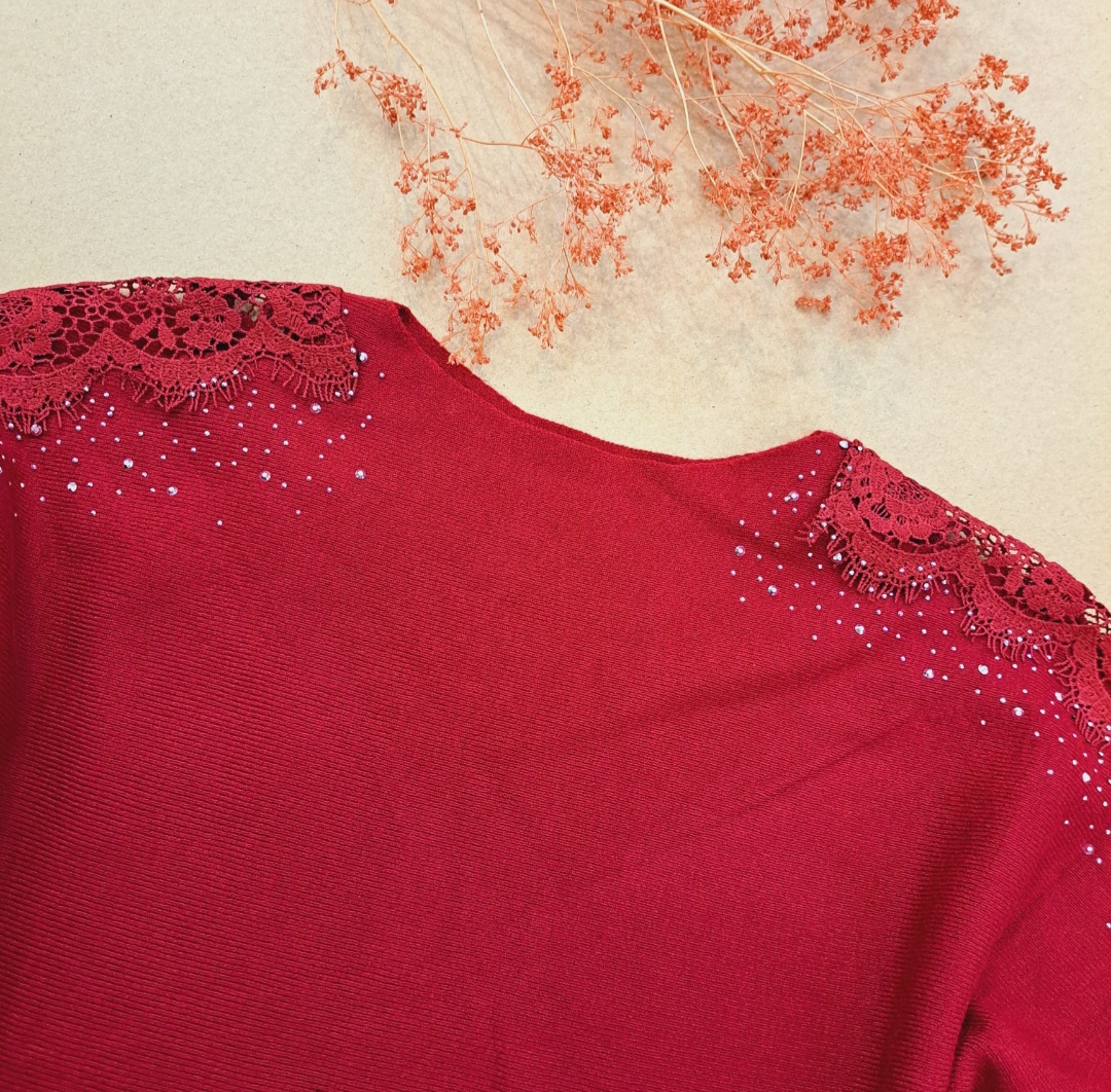 ***آستینهاخرجکار توری دارند/آستین کیمونو/پایین بلوز هلالی است.