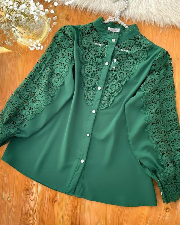 رنگ سبز XL:دورسینه: ۱۰۶cm دور بازو: ۴۵cm قدآستین: ۵۳cm قدشومیز: ۶۵cm دور مچ: ۲۴cm