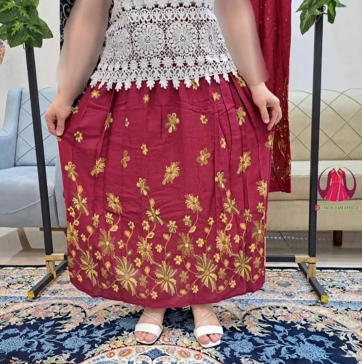 دامن نخی گلدار طرح پیچک کد ۰۳۰۵۲۶۲