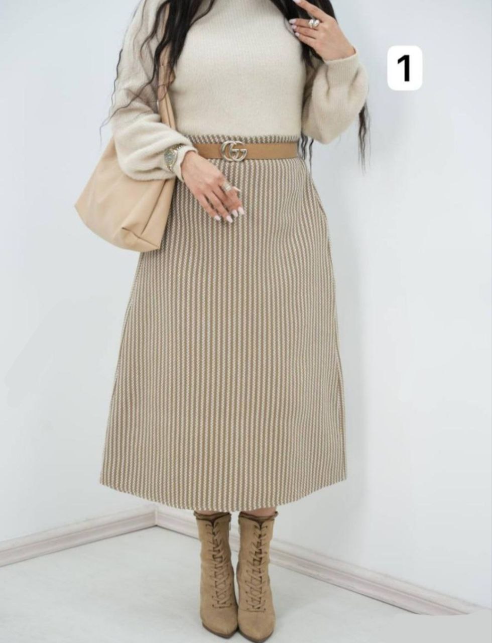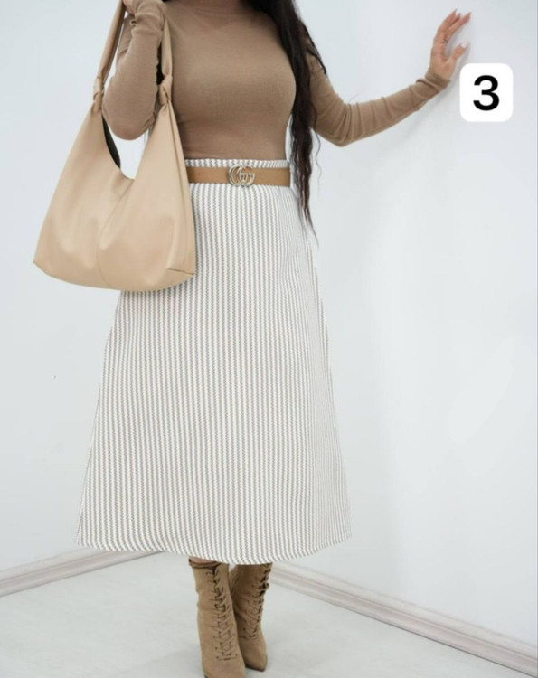 دور کمر در حالت عادی: ۸۰ دورکمر باکشسانی: ۱۰۲ دورباسن: ۱۱۸ بلندی دامن: ۹۰ اندازه چاک: ۲۲