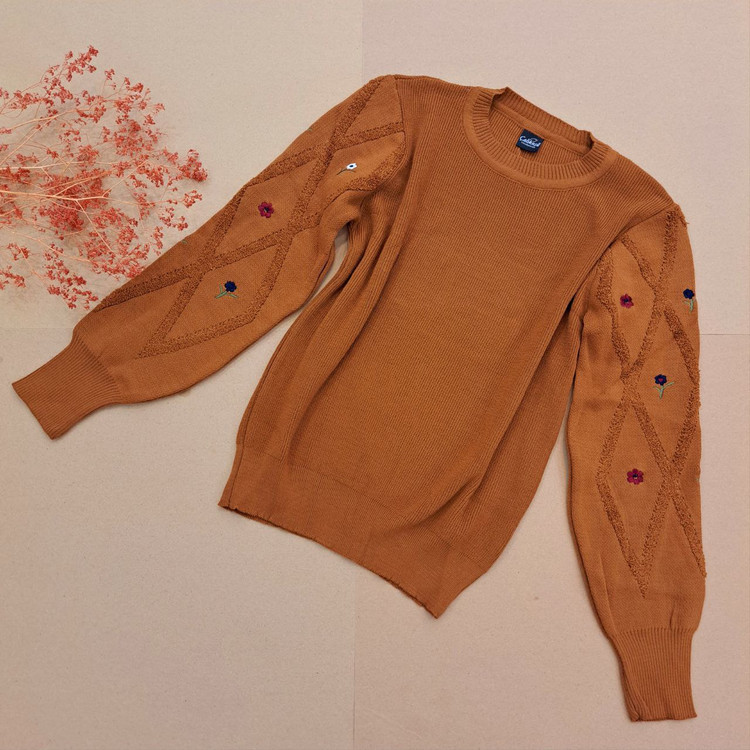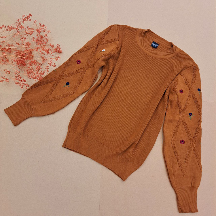 بلوز بافت زنانه آستین گلدوزی شده مدل المیرا کد ۰۴۰۸۲۷۲