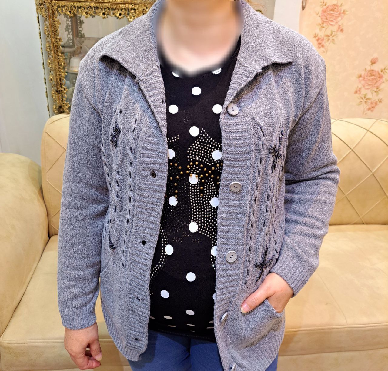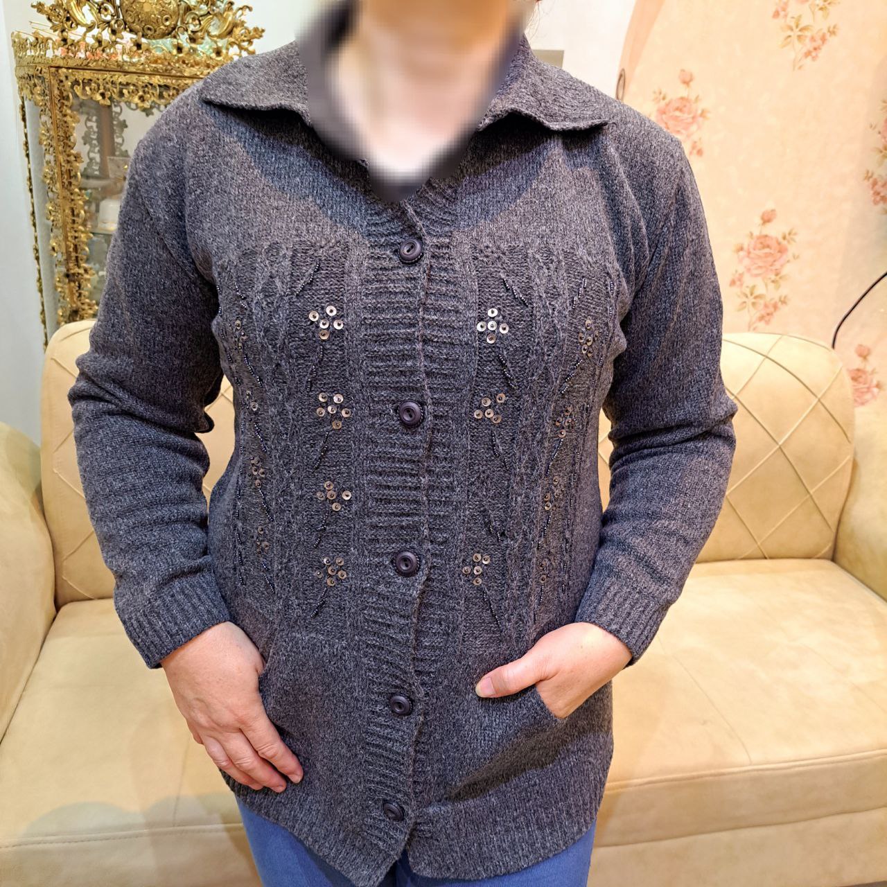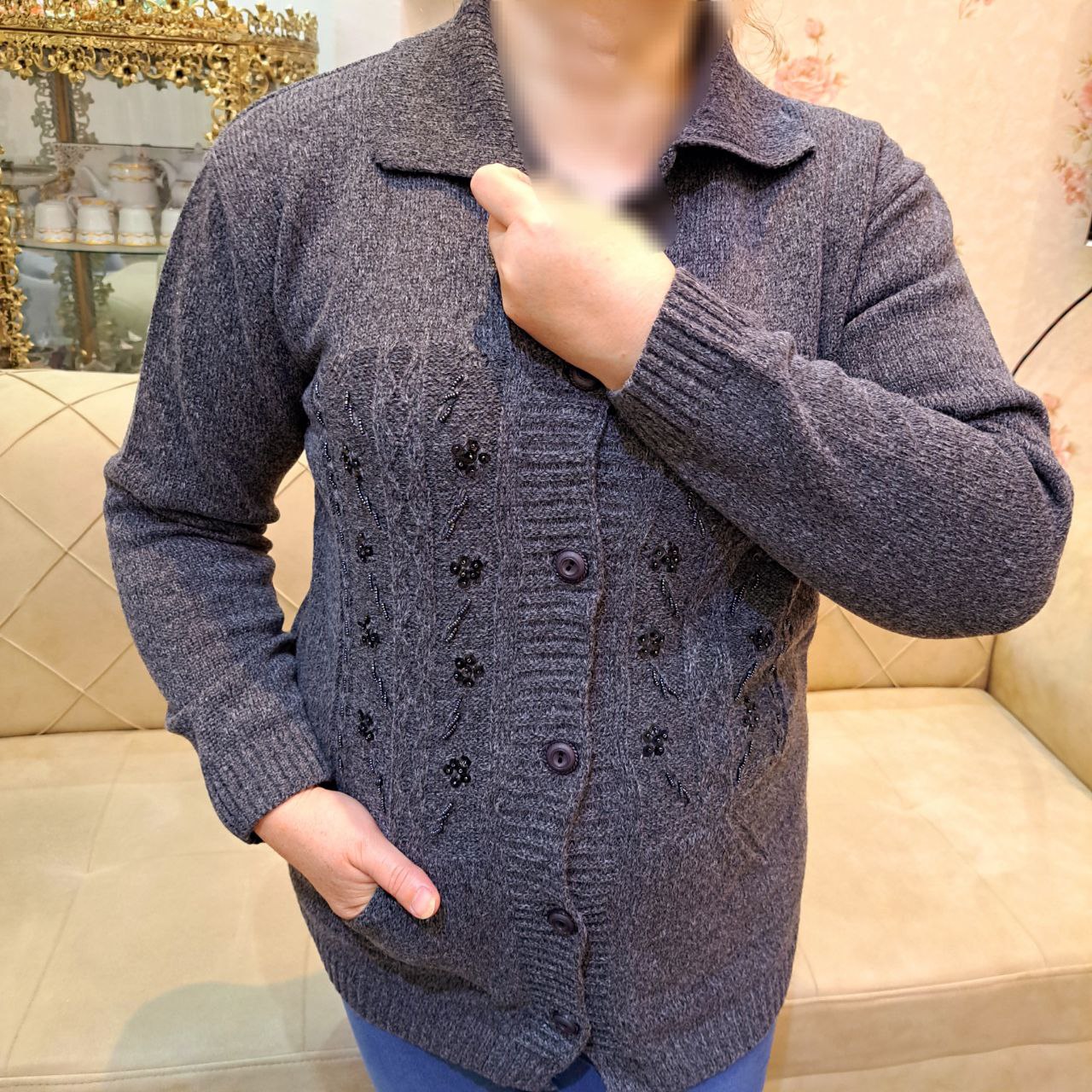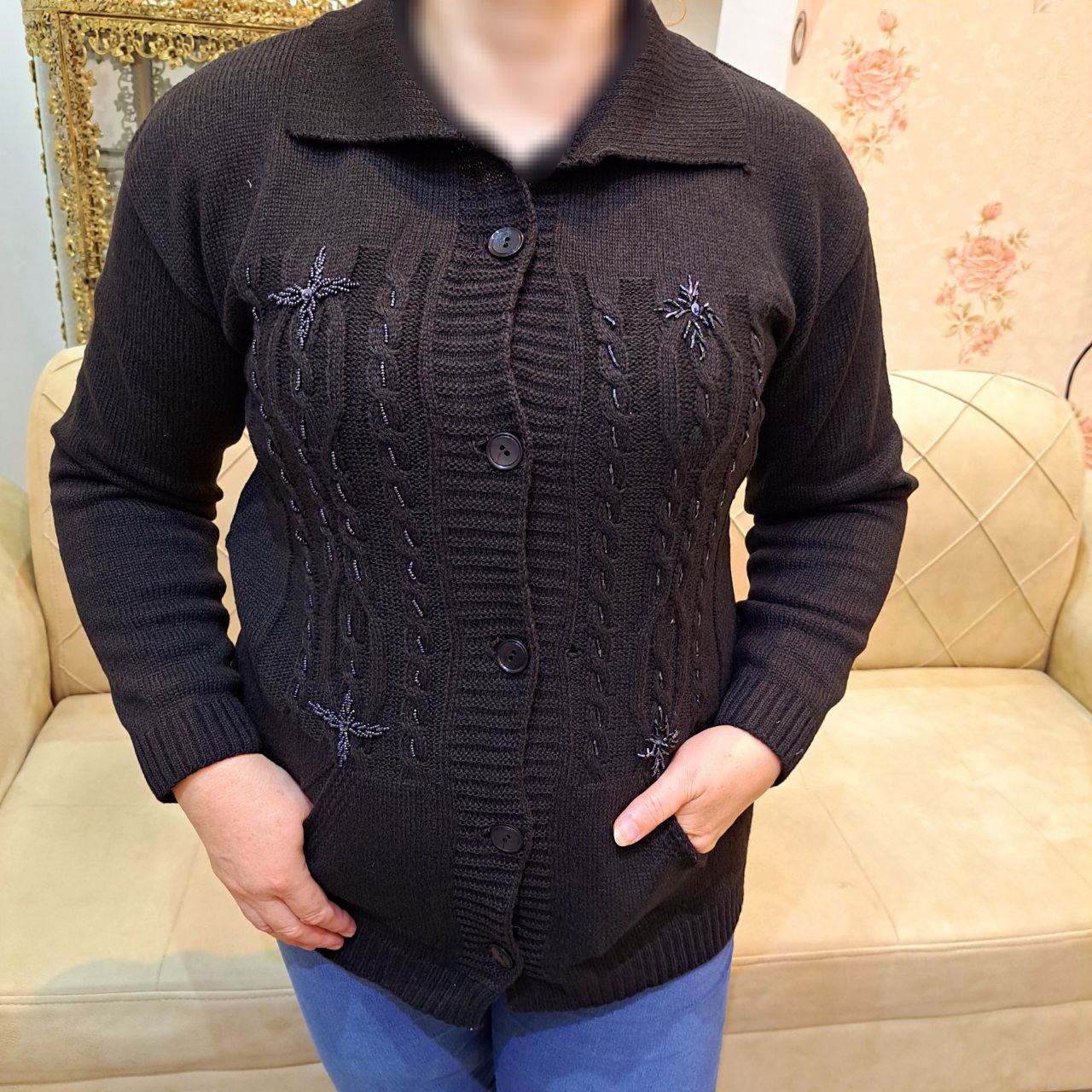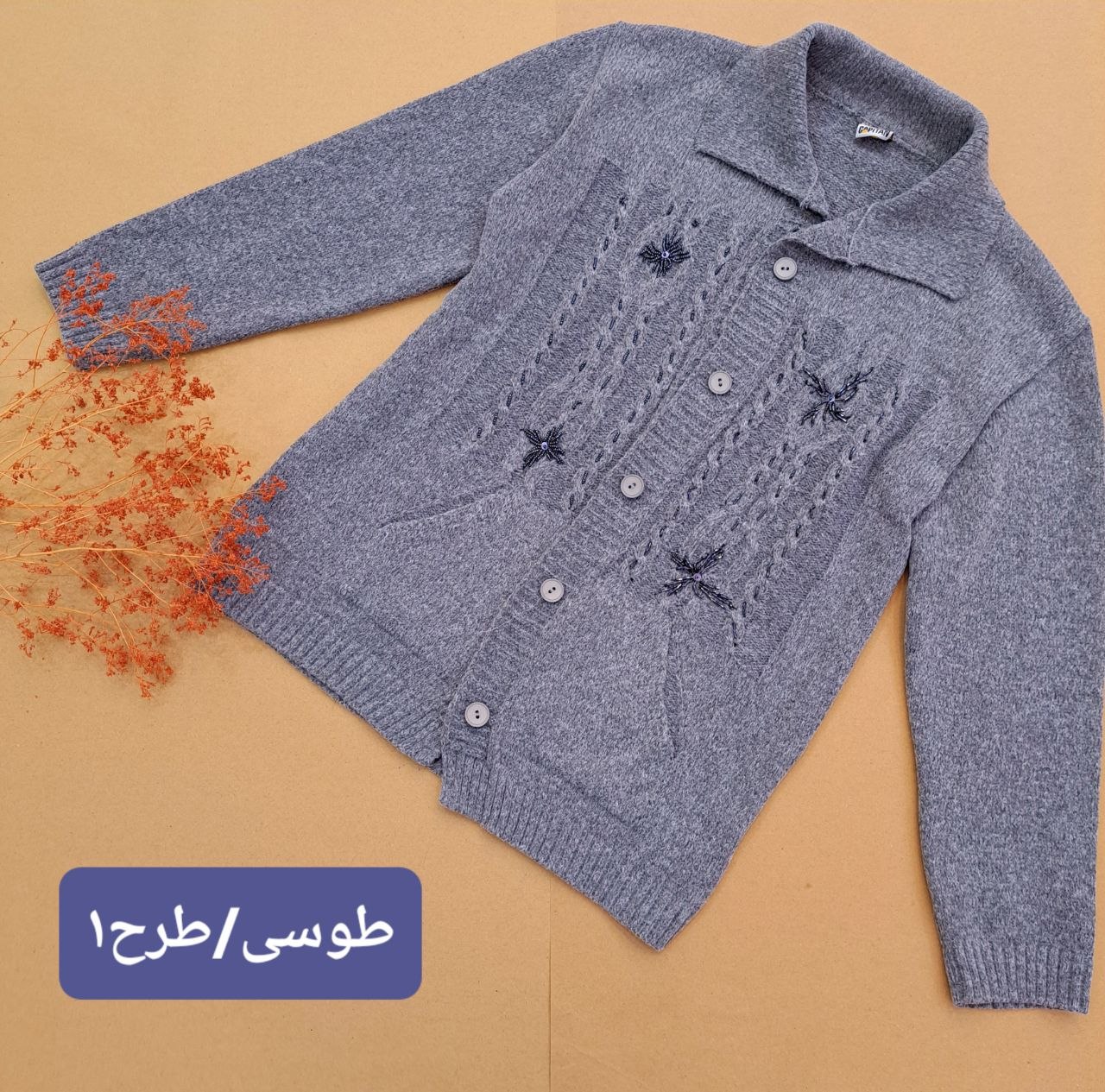 ژاکت بافت کار شده مدل نسترن کد ۰۴۰۹۰۷۲