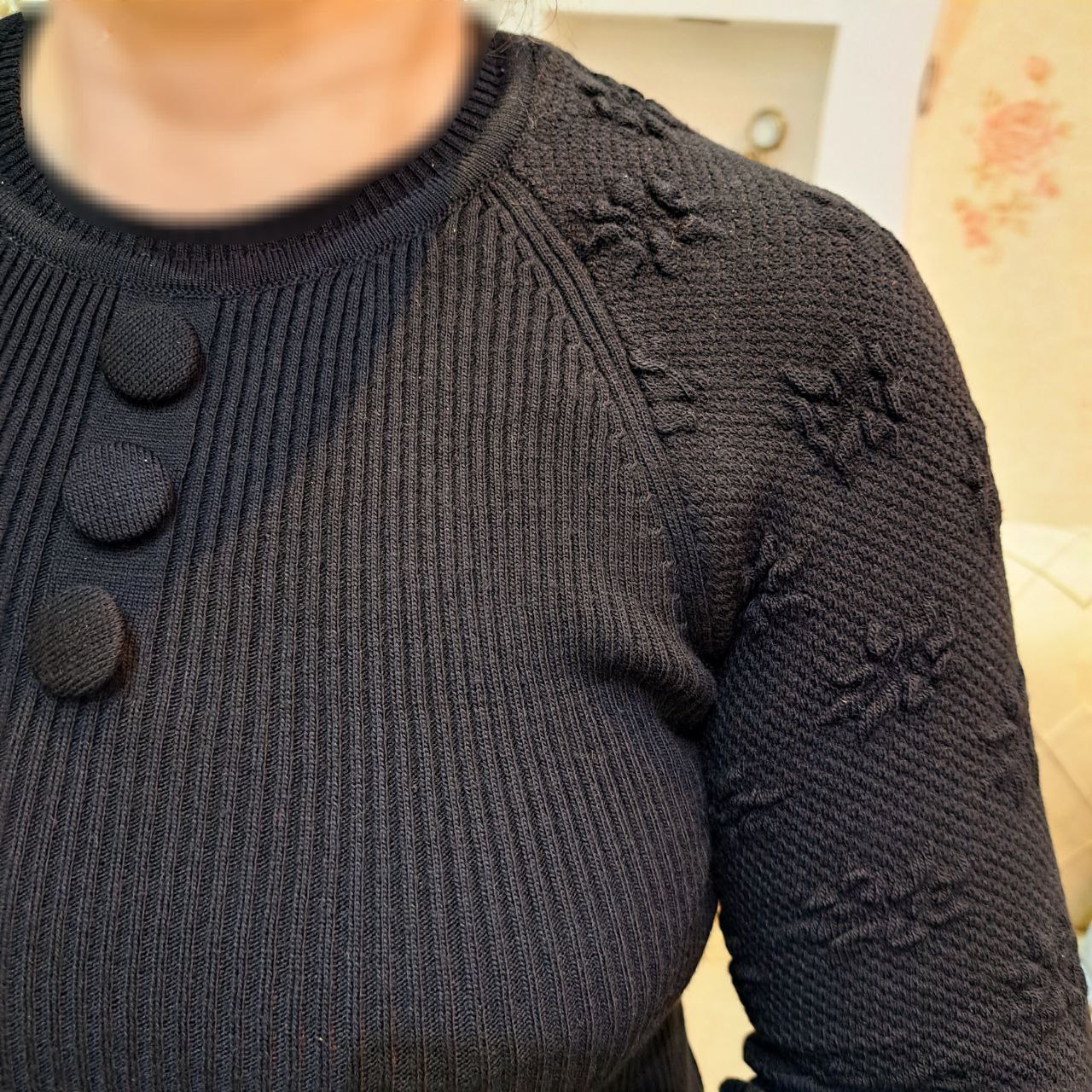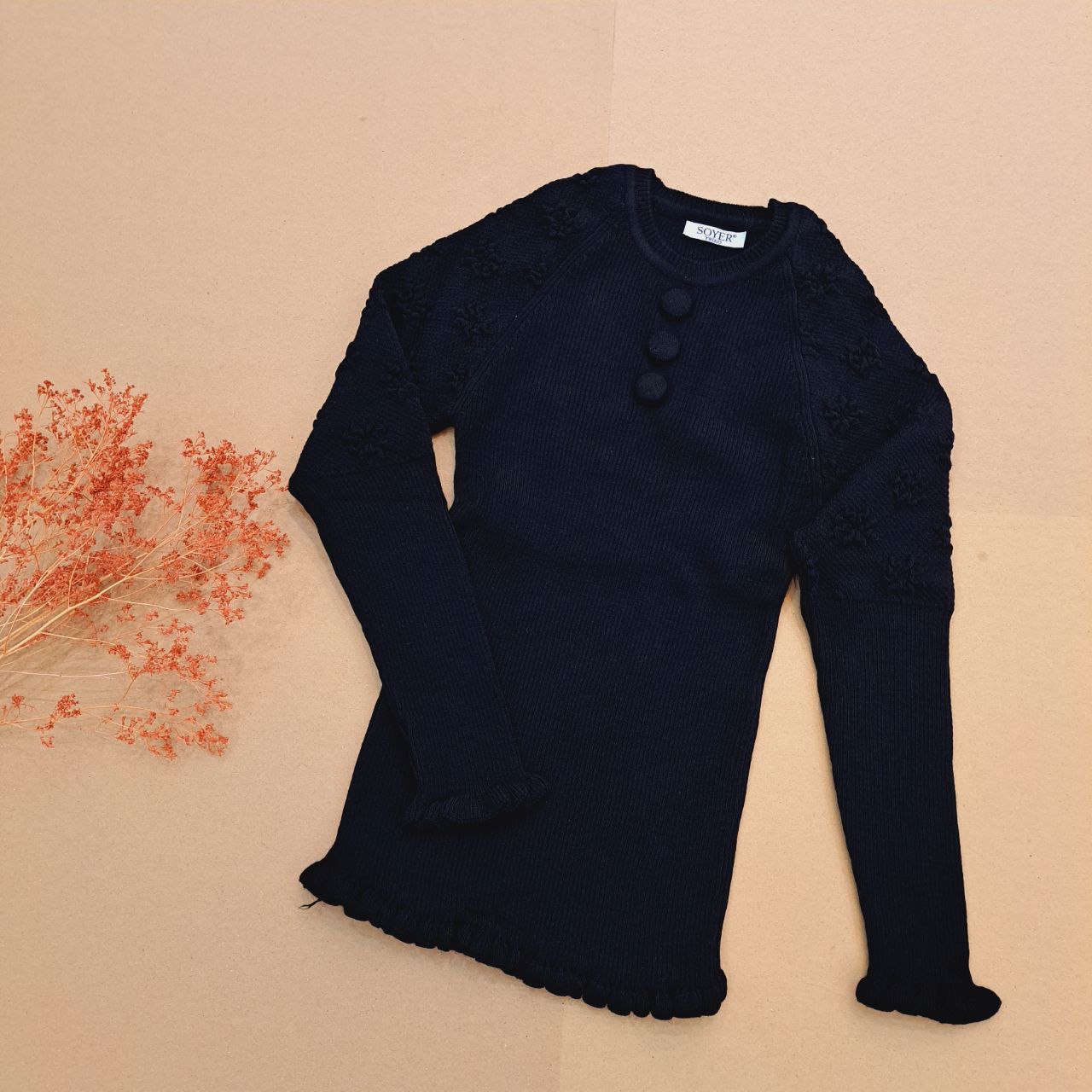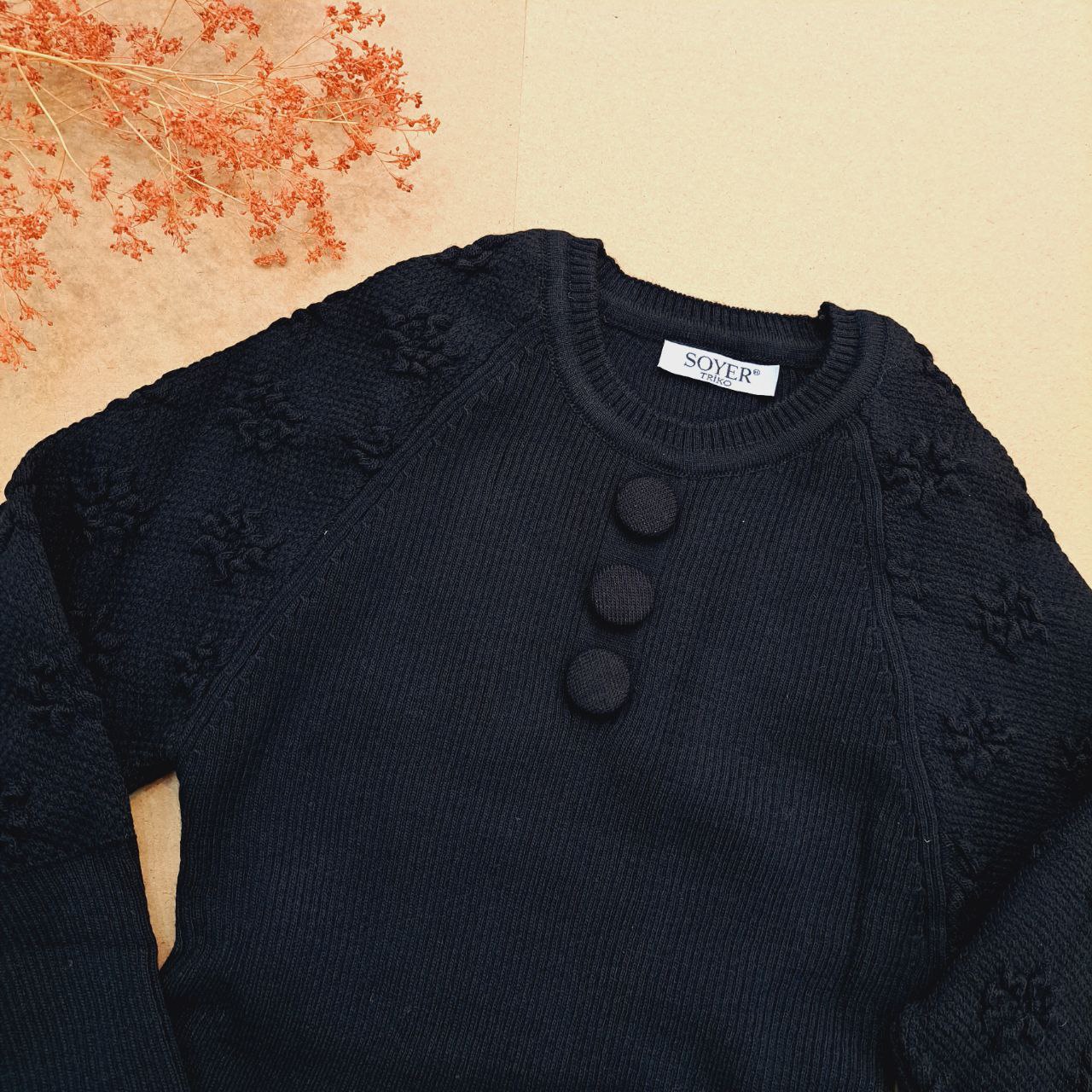 ***یقه گرد/ مچ آستین و پایین لباس چیندار/جلو سه دکمه نما.