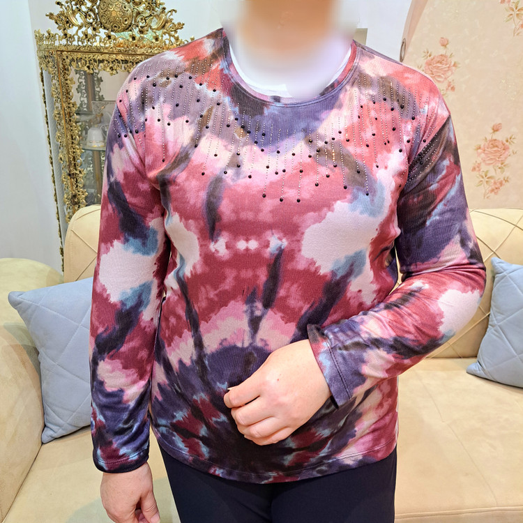 ***یقه گرد/جلو سینه سنگکاری شده/دارای کشسانی