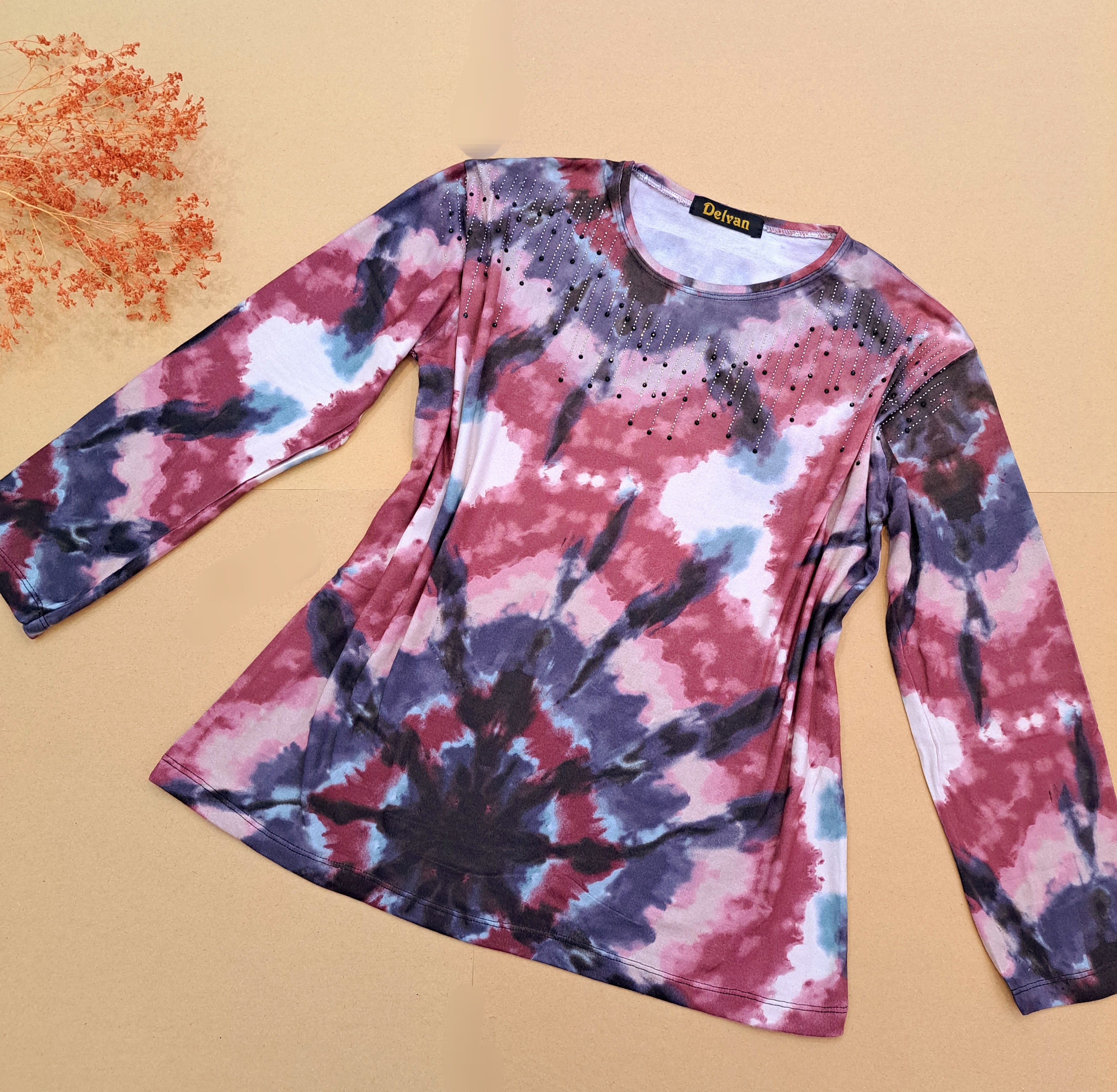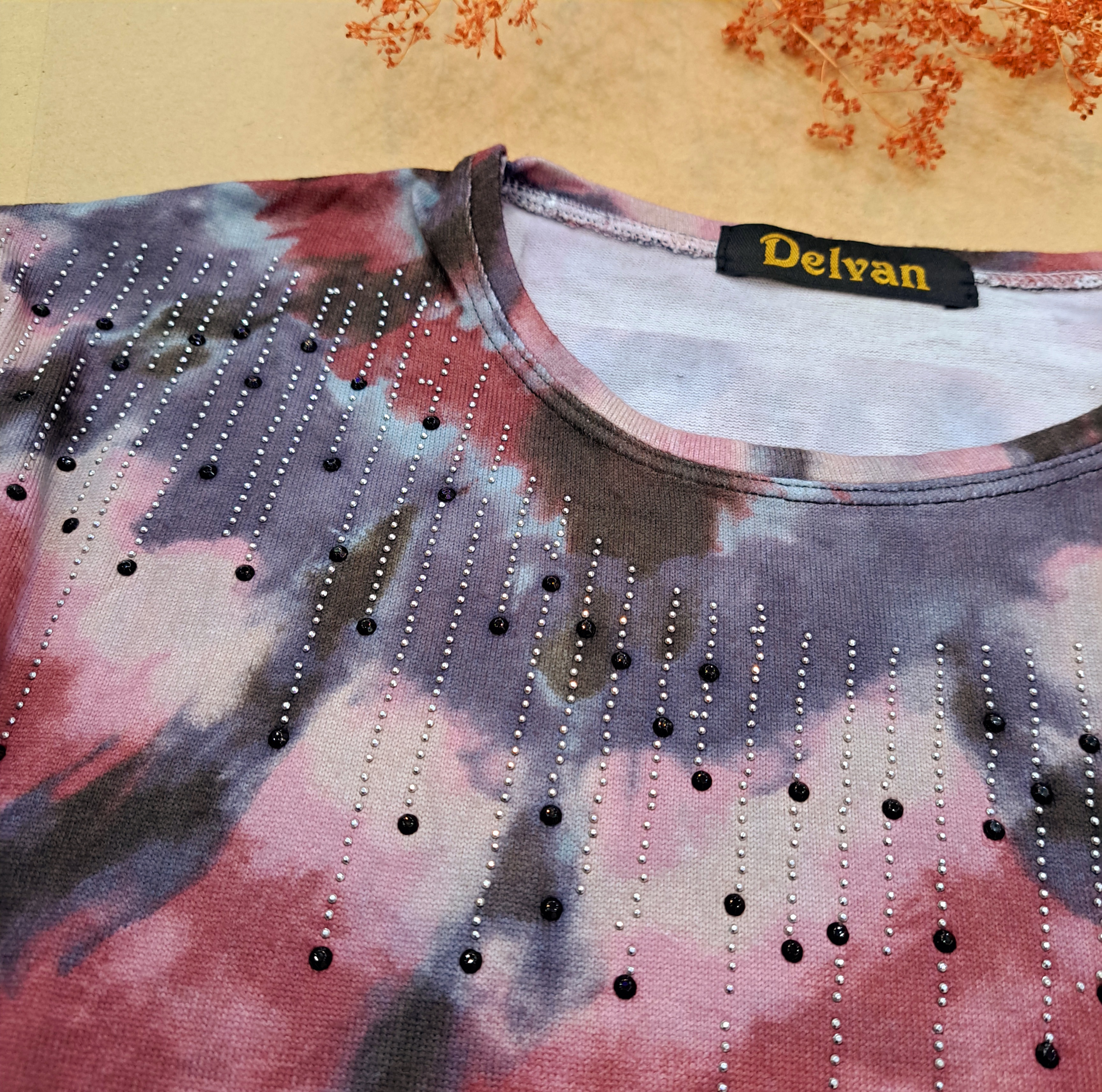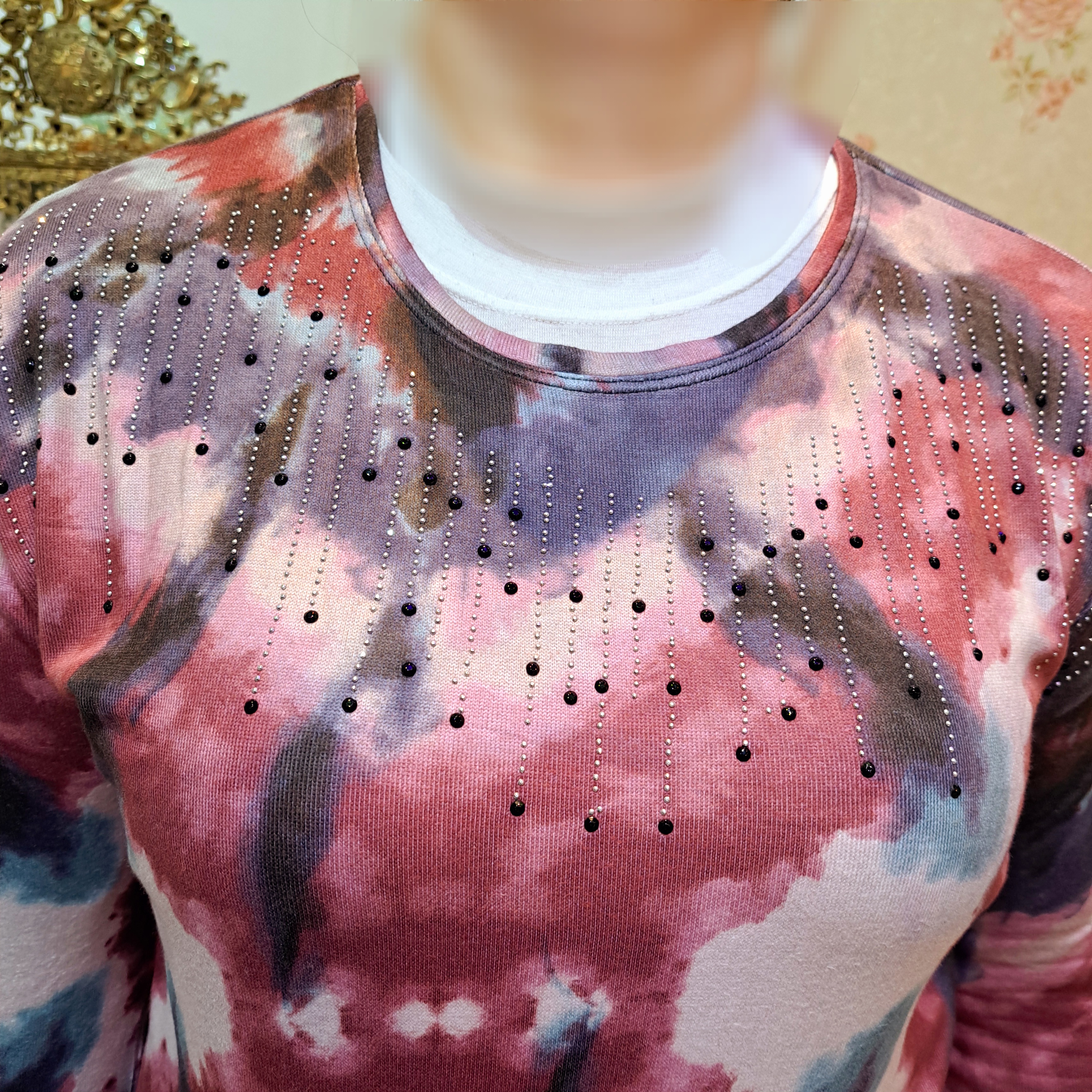 ***یقه گرد/جلو سینه سنگکاری شده/دارای کشسانی