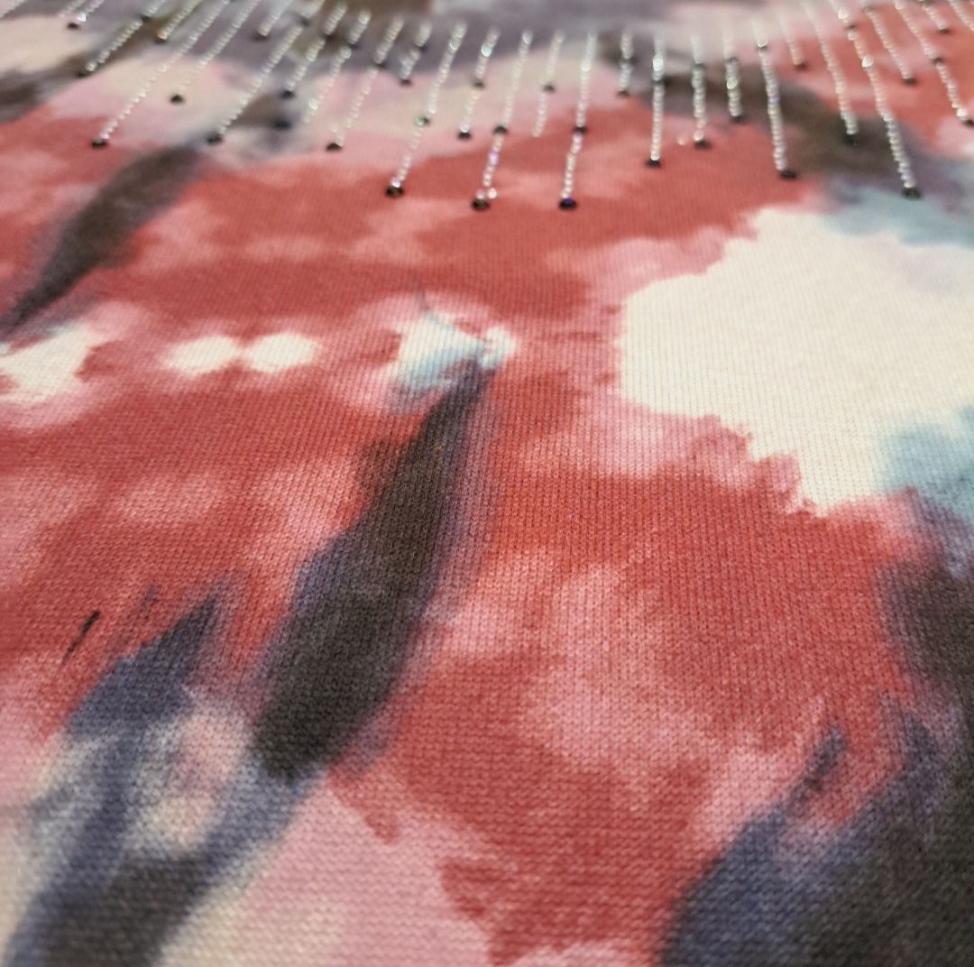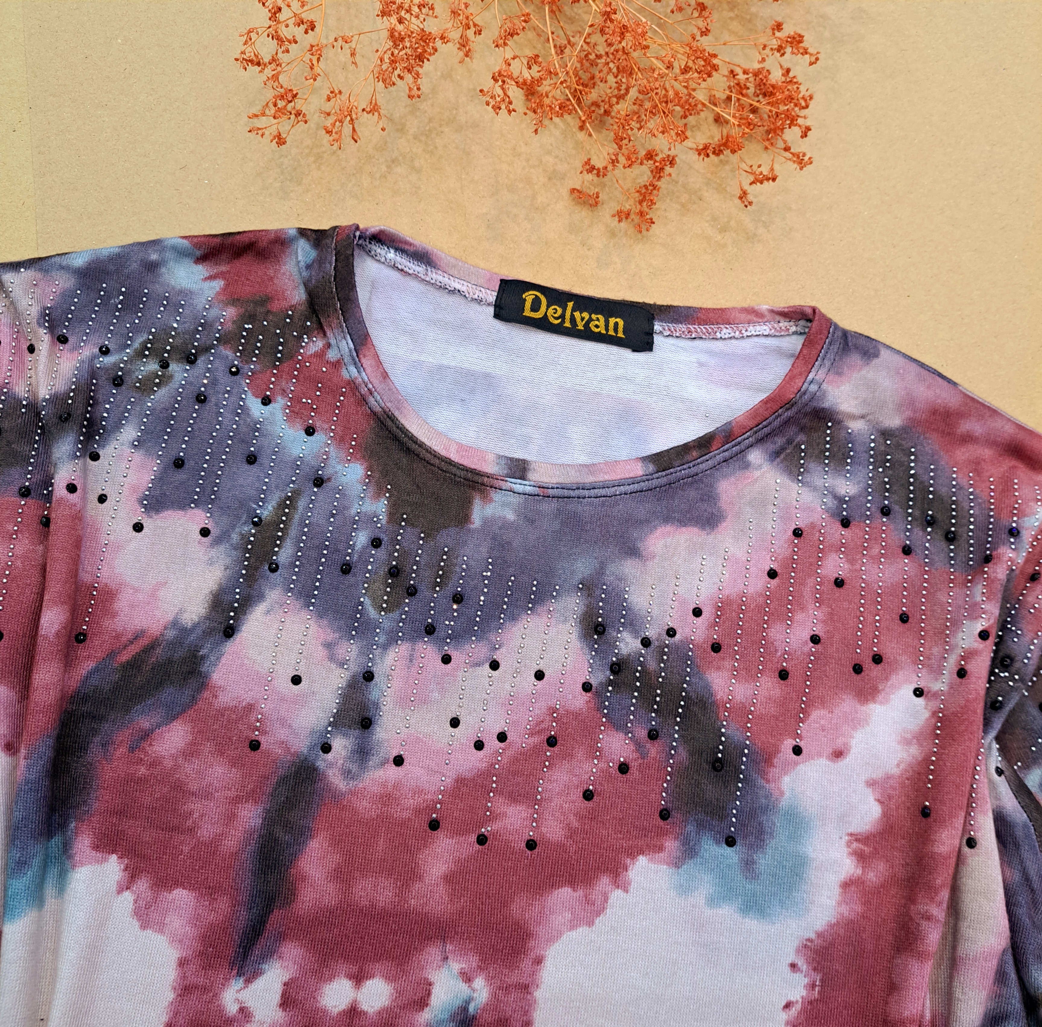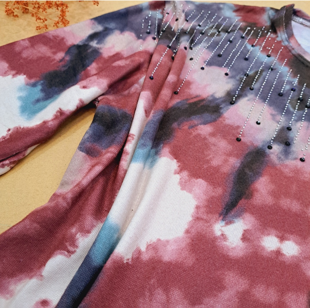 ***یقه گرد/جلو سینه سنگکاری شده/دارای کشسانی