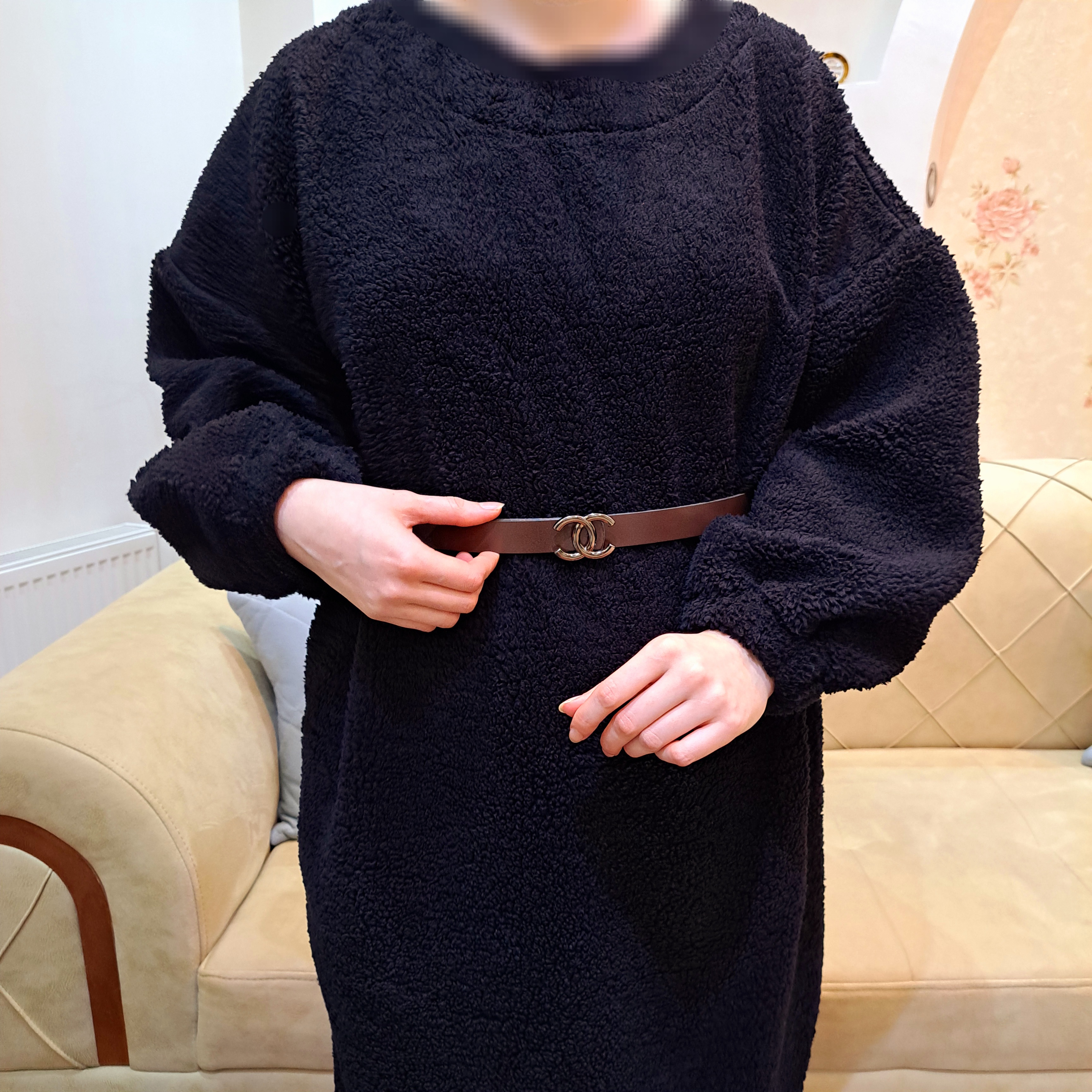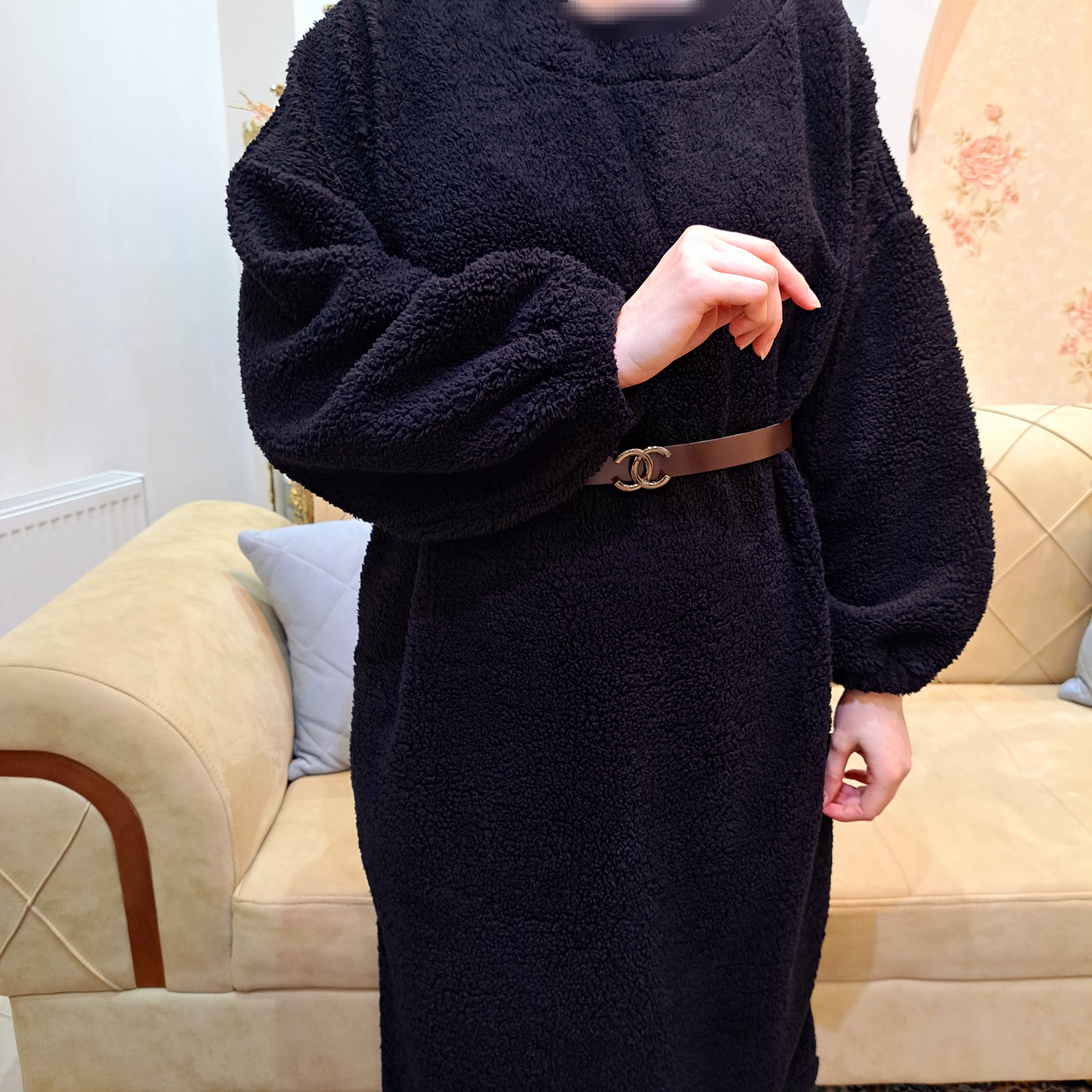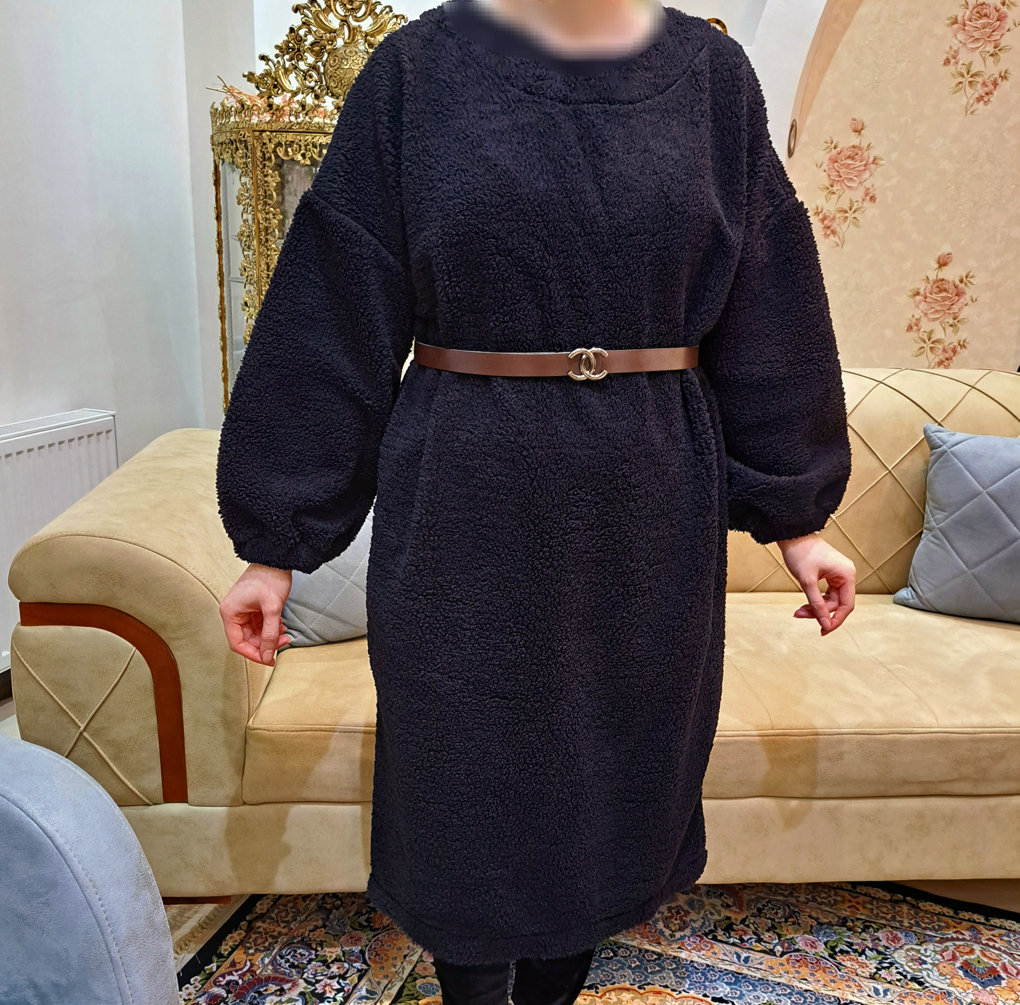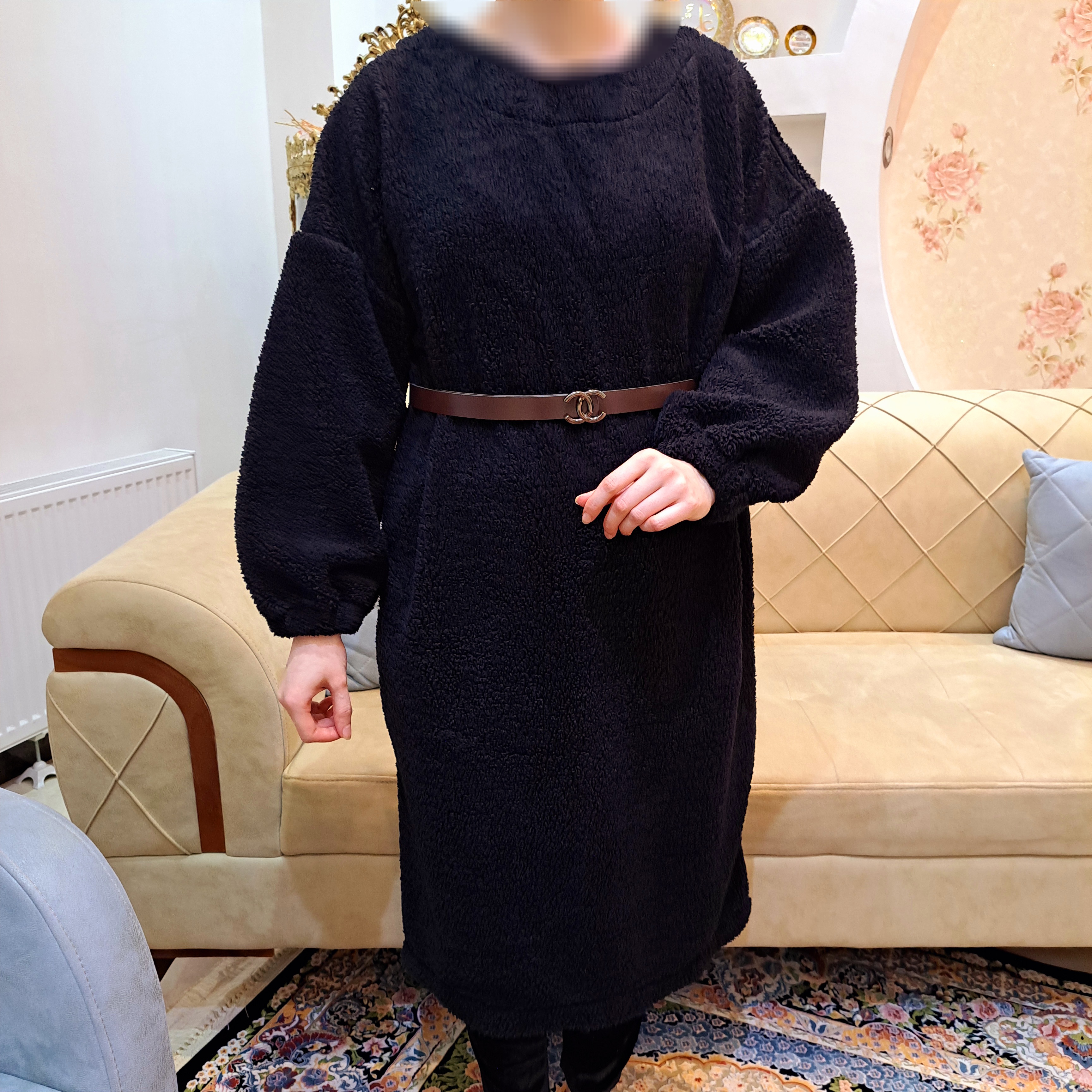 ***یقه گرد/آستین کیمونو/مچ آستین کشدار/بدون کمربند.