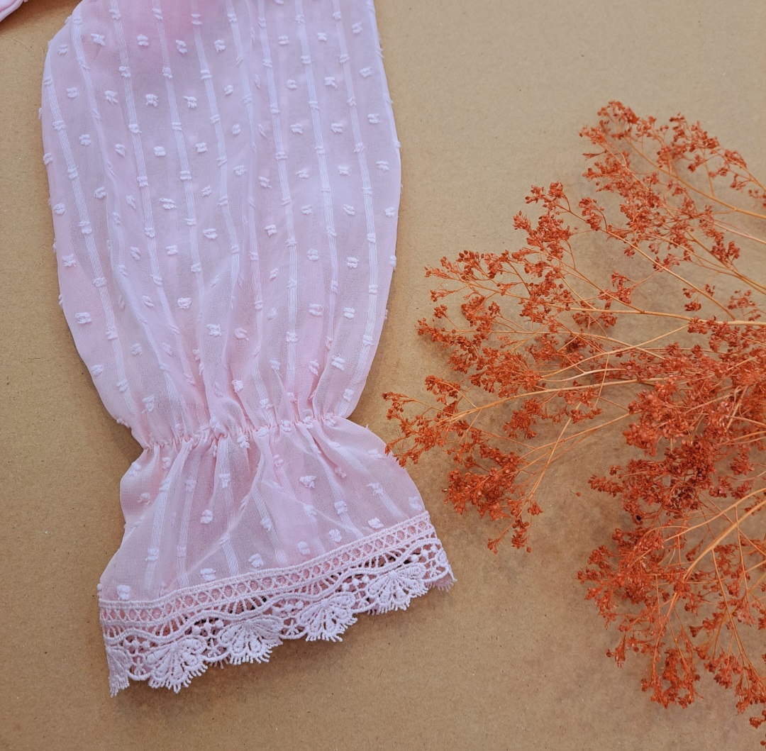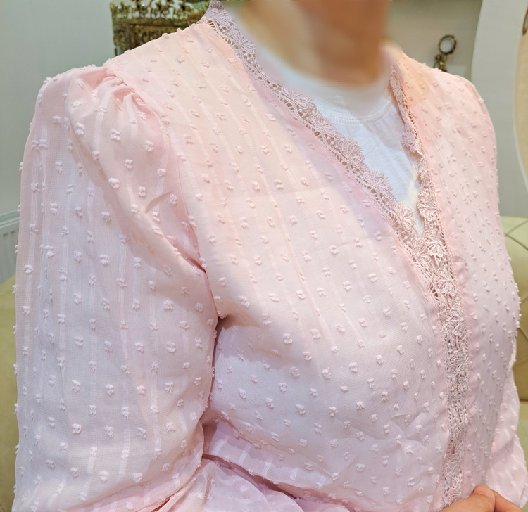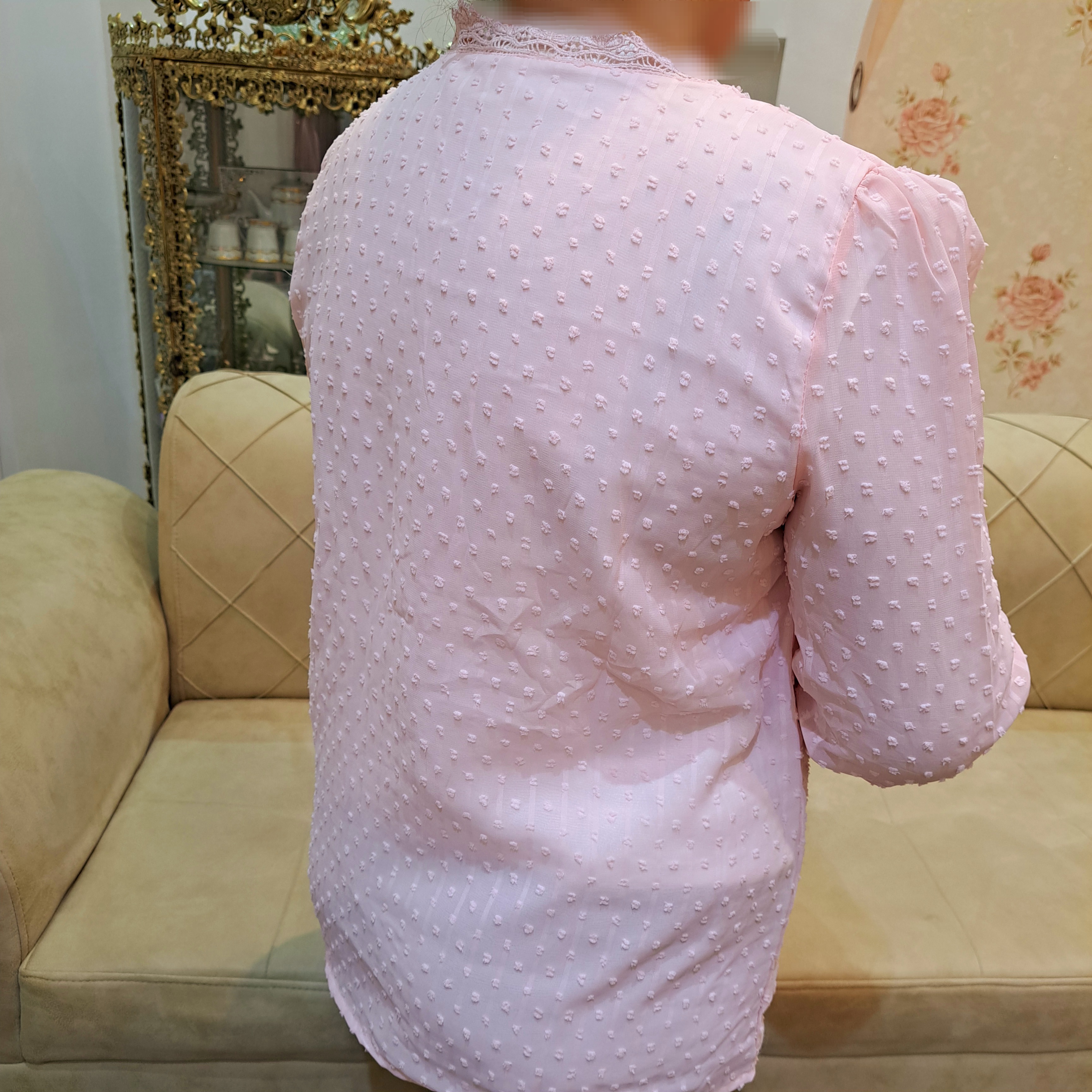***جلو بسته/گیپور کارشده/ آسترکشی شده/بدن نما نیست/سرشانه پفکی/مچ آستین کش عروسکی/ پایین مچ ، گیپور دوزی شده.
