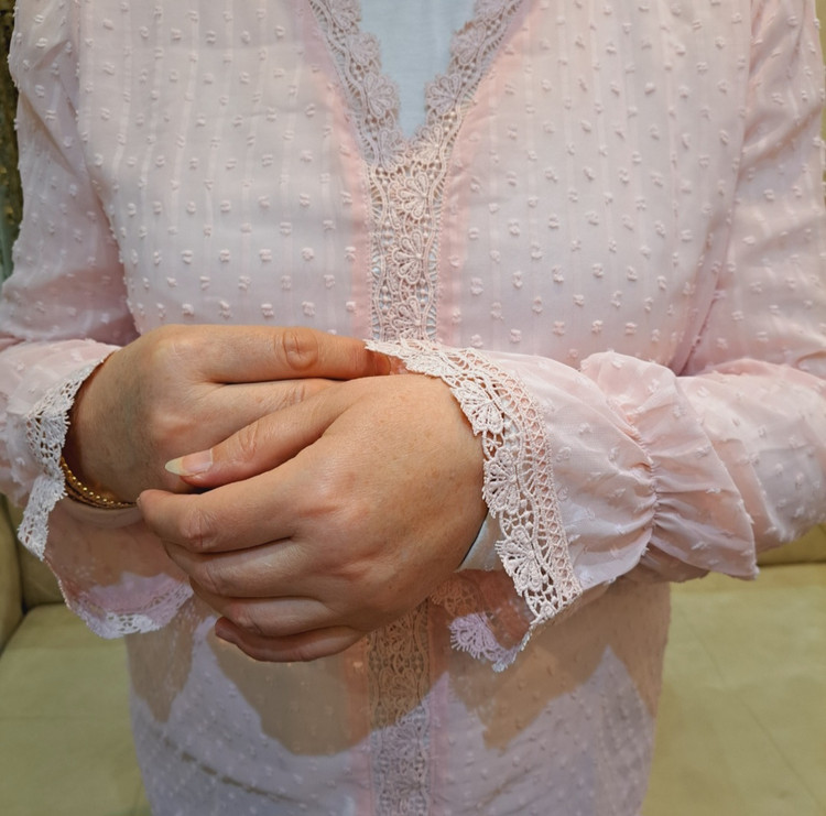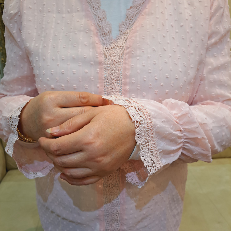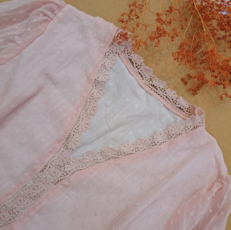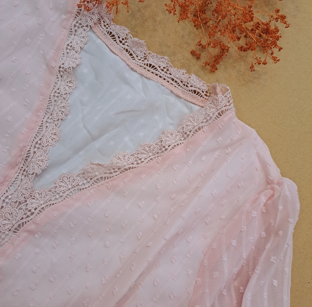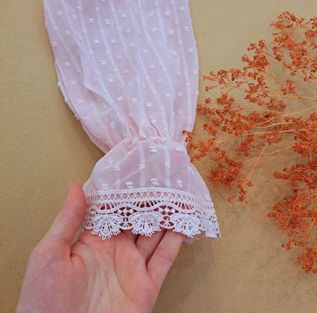 ***جلو بسته/گیپور کارشده/ آسترکشی شده/بدن نما نیست/سرشانه پفکی/مچ آستین کش عروسکی/ پایین مچ ، گیپور دوزی شده.
