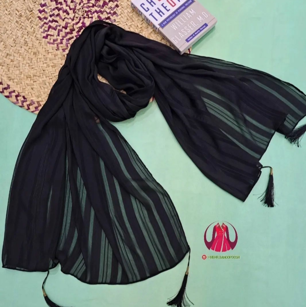 شال حریرلمه‌دار منگوله‌ای کد ۰۲۱۱۰۵۵